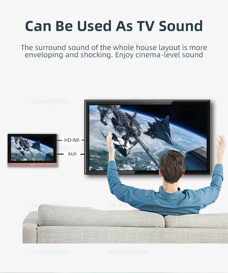 5. Поддержка DLNA, Airplay, Qplay и других протоколов, вы можете нажать на мобильный телефон, музыку, видео, изображения, файлы, APK на панель усилителя стены для воспроизведения или установки.