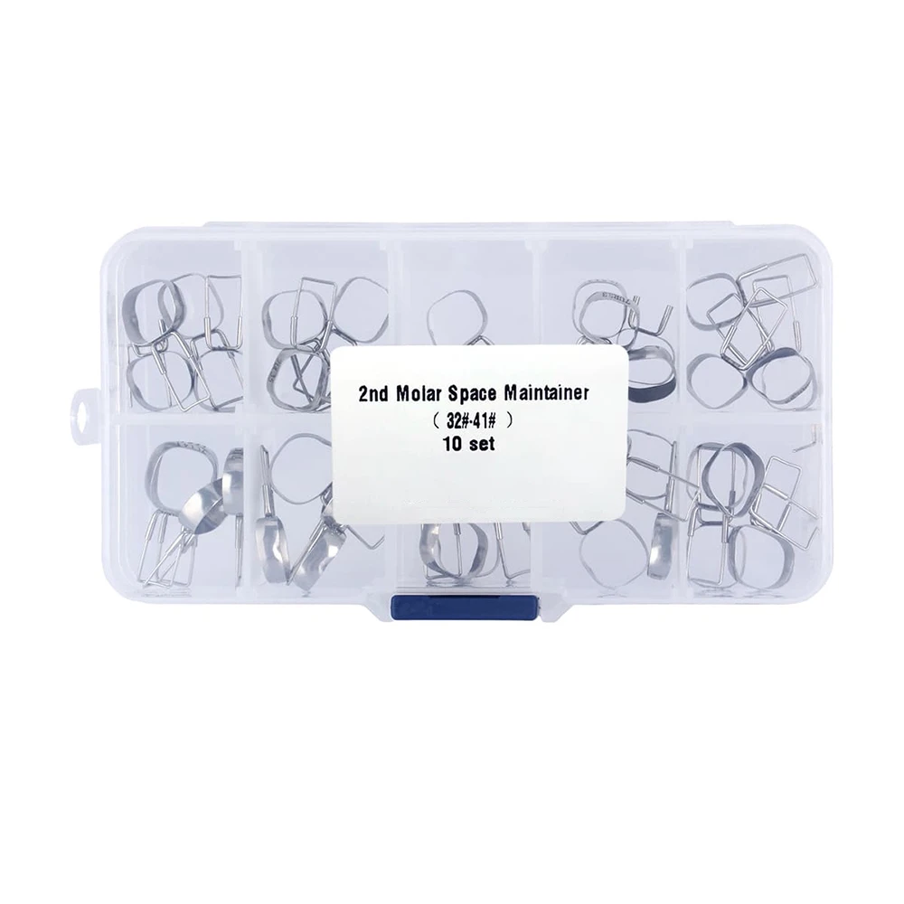 Molar Space maintainersотносится к устройству, которое поддерживает нормальный физиологический зазор после того, как зуб потерян преждевременно, для того, чтобы сохранить долю, чтобы предотвратить наклонение прилегающего зуба К утерянному участку и удлинение противоположного зуба. Используется для поддержания преждевременной потери мезио-дистальных и вертикальных зазоров между зубами в зубной клетке для поддержания нормального извержения унаследованных постоянных зубов