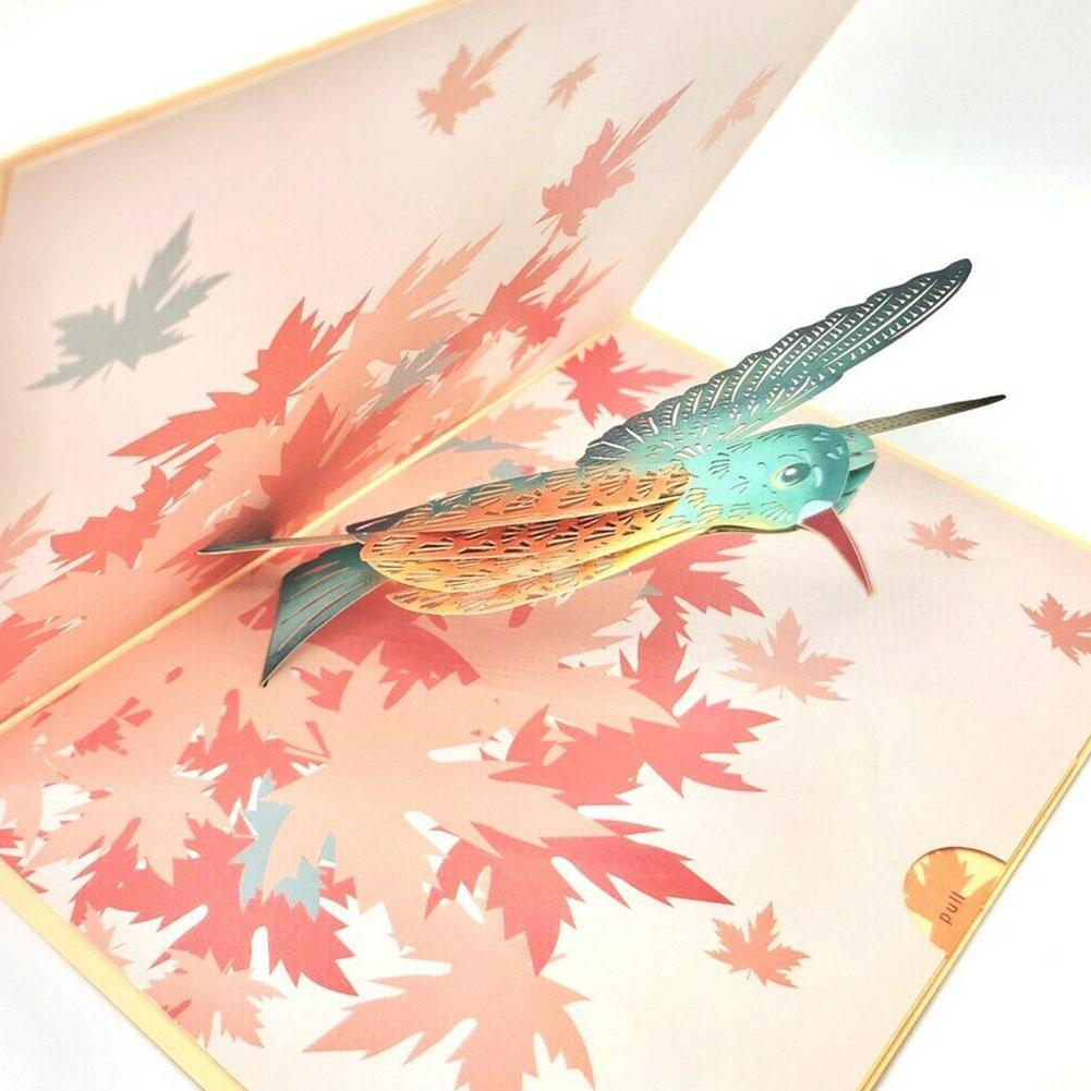Название продукта: кленовый лист птицы 3D поздравительная открытка