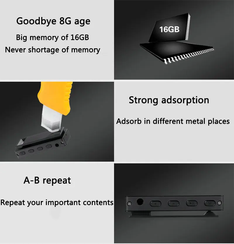 9. Обнаружение низкого заряда батареи и автоматическое Сохранение файла записи перед выключением питания.
