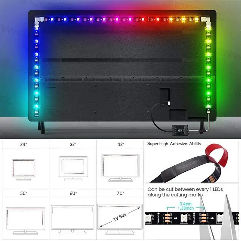 【Легко использовать 】сильный клей на полосе светильник обратно делает его легко монтируется. Пожалуйста, нажмите на светильник s strip пальцем, чтобы сделать его более прочным, когда вы устанавливаете. Светодиодный светильник TV поставляется с интерфейсом USB и музыкальным светодиодным контроллером, рабочее напряжение DC5V.