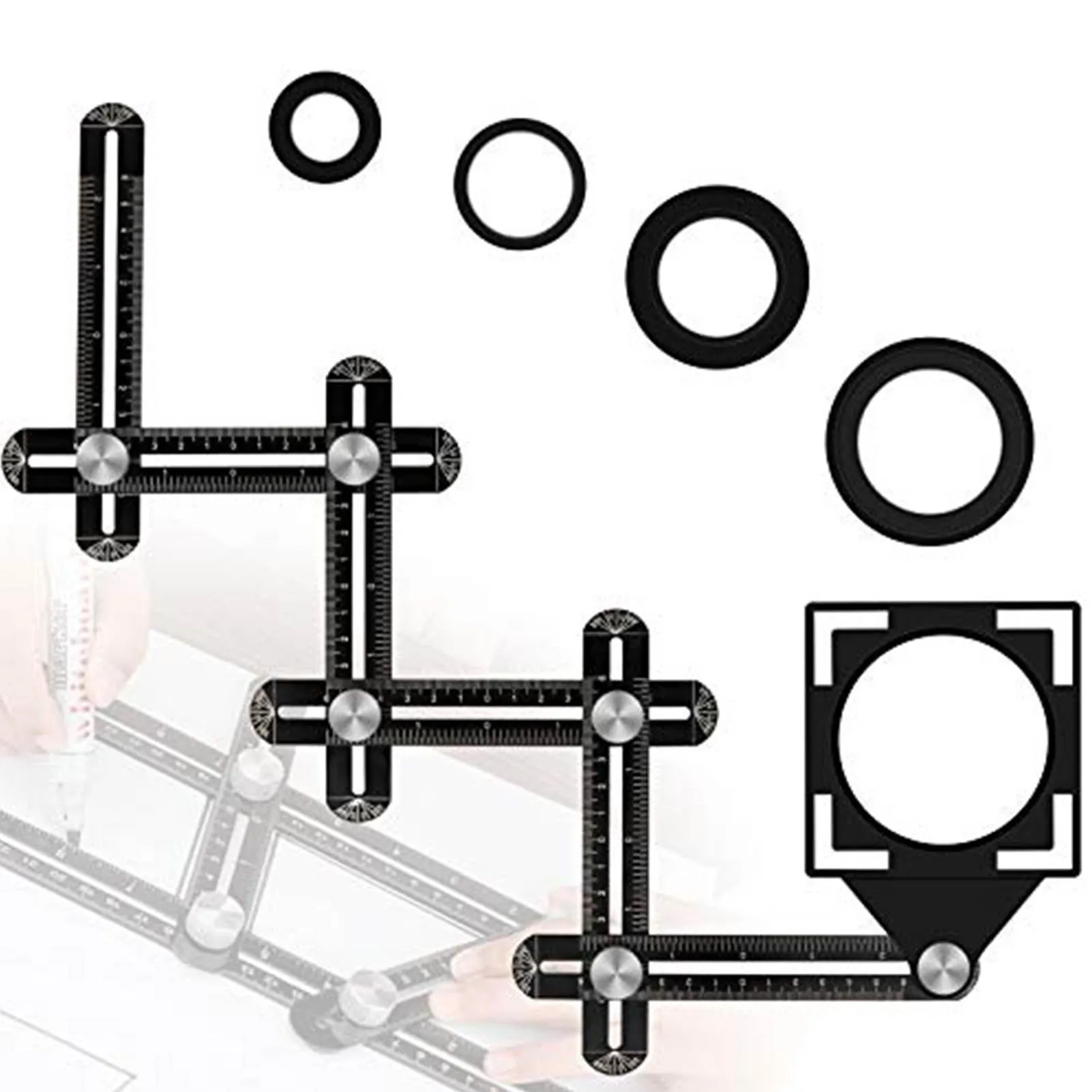 3. Простота использования: вы можете отрегулировать 6 металлических ручек, чтобы точно создать желаемую форму, а затем найти, где просверлить нужное отверстие. С 6 складными краями пользователи могут использовать инструмент для поиска углов, чтобы легко создавать и измерять специальные углы или формы для повышения эффективности работы. Кроме того, прилагаемые винты имеют большой размер и могут быть заменены одной рукой, что делает их очень простыми в использовании.