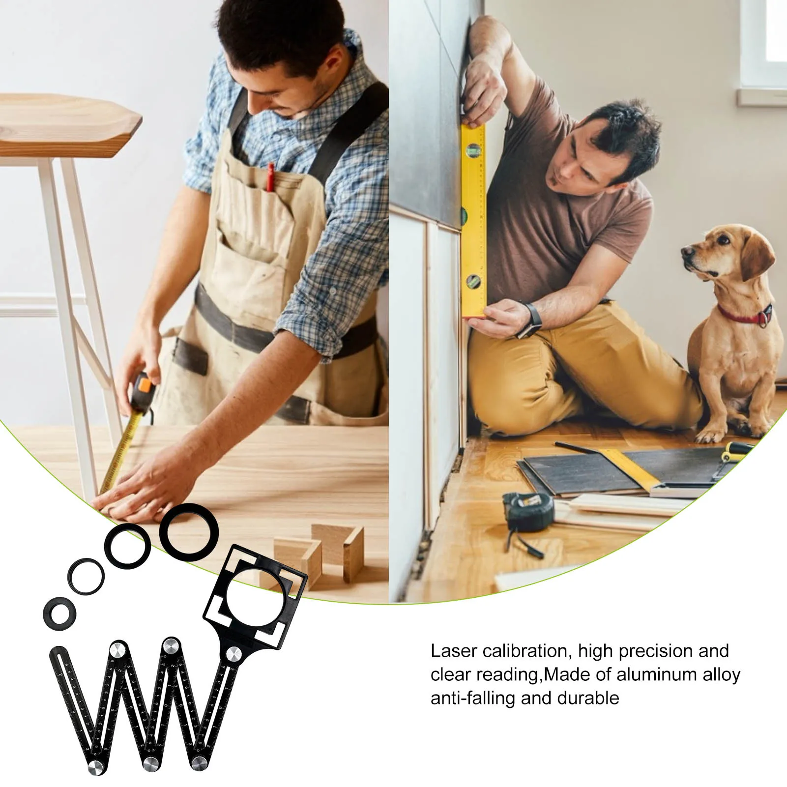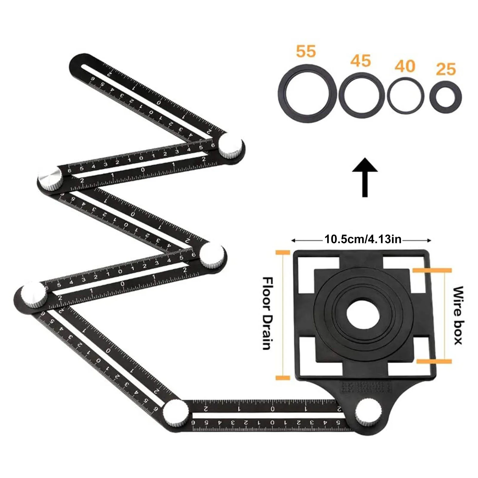 1. Улучшенная линейка для измерения угла: многоугольная линейка имеет шестиугольную линейку и устройство для открывания отверстий с 5 отверстиями. Вы можете отрегулировать металлическую ручку, чтобы точно создать желаемую форму, а затем найти положение для просверления нужного отверстия. Диаметр 5-отверстие стельки: 25/40/45/55/2953 дюймов.