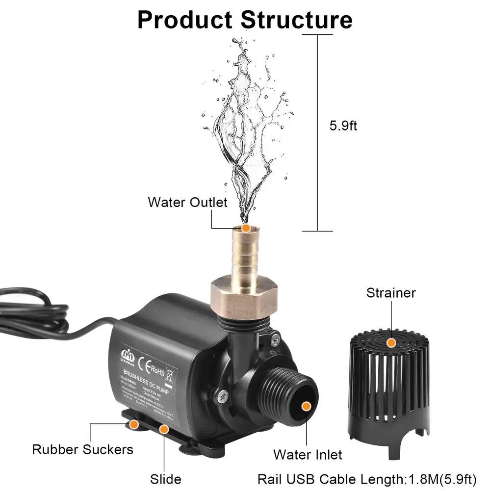 3. Длительный срок службы: 5 В напряжение, около 1,27 см/0,50 дюйма внешняя резьба на насосе. Наружный диаметр латунного соединителя составляет около 10 мм/0,40 дюйма. С 5521DC гнездовой разъем, около 1,5 метров/59,06 дюйм (ов) кабель, длительный срок службы, может достигать 20000 часов.4. Супер Энергосбережение: Экономия более 50% электроэнергии, чем обычный водяной насос, низкое напряжение