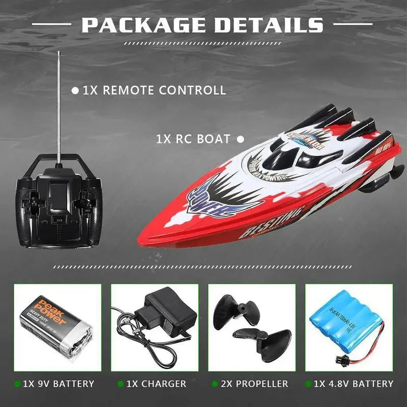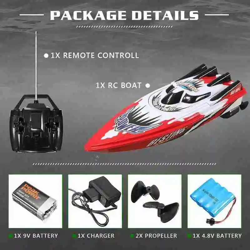 опрокидывания функции восстановления нажатием дроссельной заслонки и триггер вперед, а затем возвращаясь к Автоматическая правая сторона 2,4 ГГц передатчик с автоматическим код сопряжения водонепроницаемый корпус с анти-наклона модульная конструкция, изготовлен из ударопрочного пластика @ # @ ABS-части легко поддерживать и заменять циркуляцию воды внутри и снаружи, чтобы поддерживать крутой двигатель на скорости гонок @ # @ Low Будильник от аккумулятора-передатчик издает звуковой сигнал, когда батарея на корабле измотана всего за 1 минуту @ # @ безопасность пропеллера, если лодка не находится в воде-реквизит не будет вращаться @ # @ зарядка аккумулятора с помощью USB-Каждое приключение длится 10-15 минут @ # @ стенд помогает защитить Пропеллер и руль, когда не используется @ # @ характеристики продукта: @ # @ Цвет: красный/зеленый @ # @ Размер: прибл. 33x11x9 см