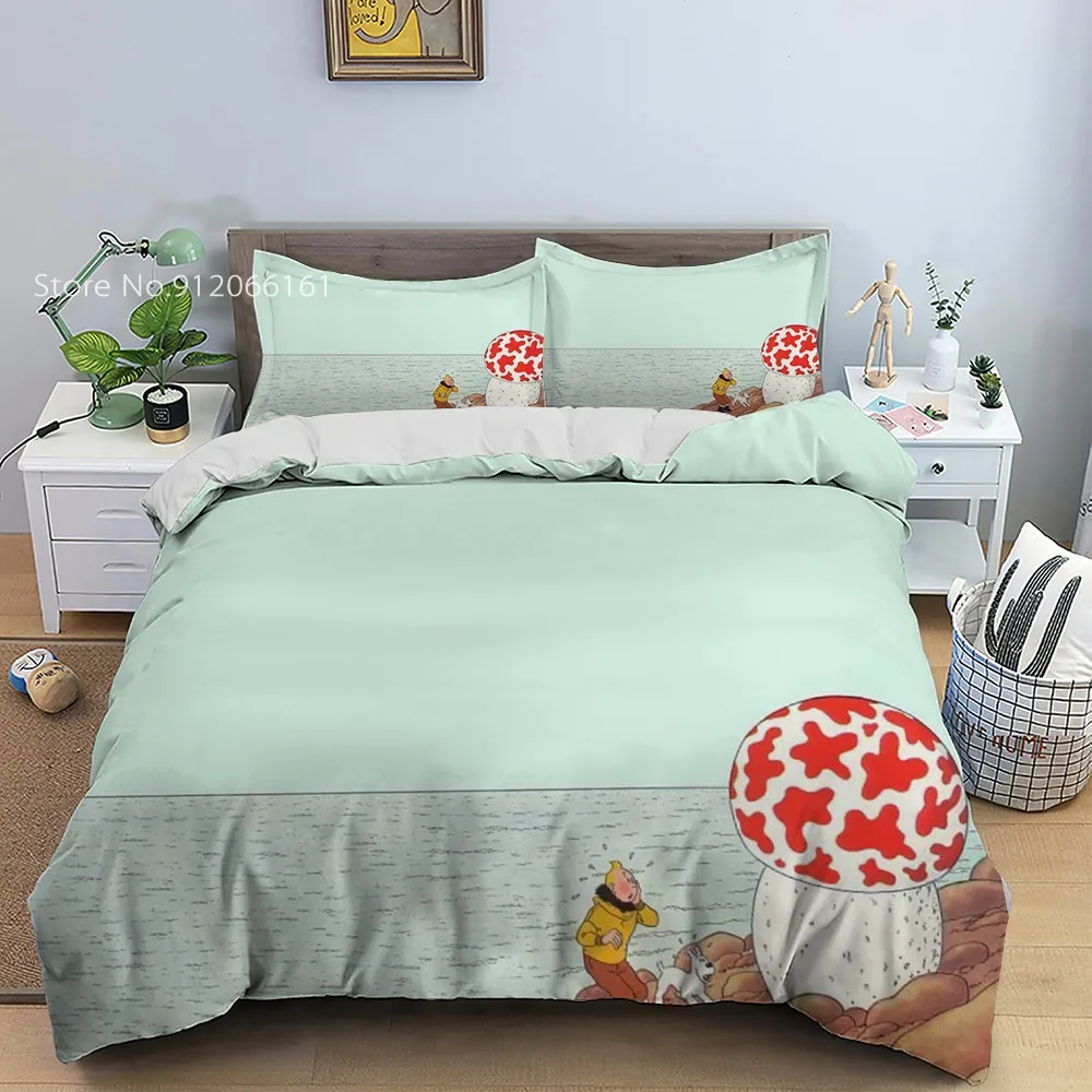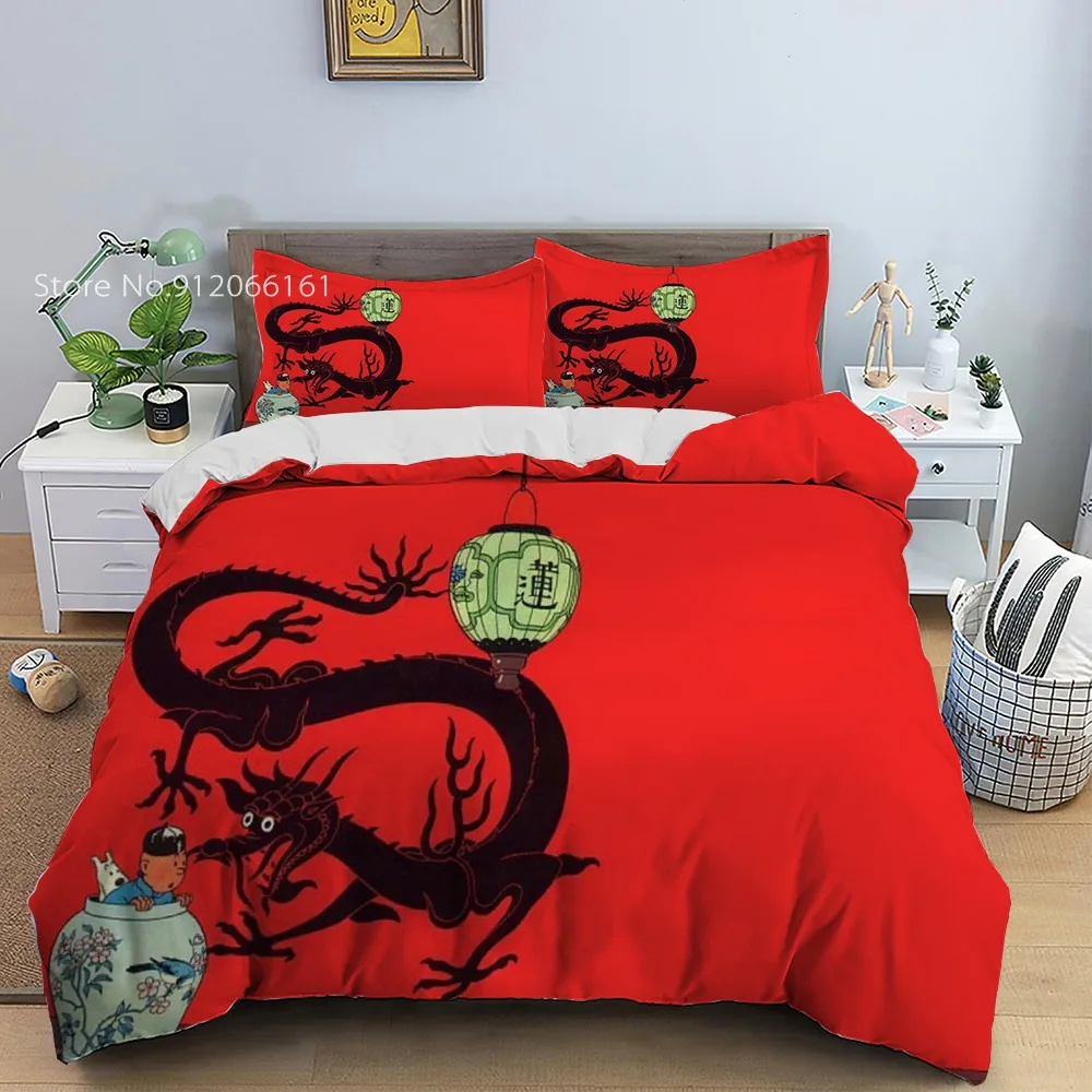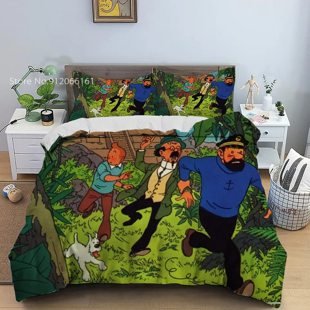 Набор постельного белья "Приключения Тинтина" 2/3 шт. японская анимация пододеяльник для спальни мультяшное покрывало с принтом наволочка