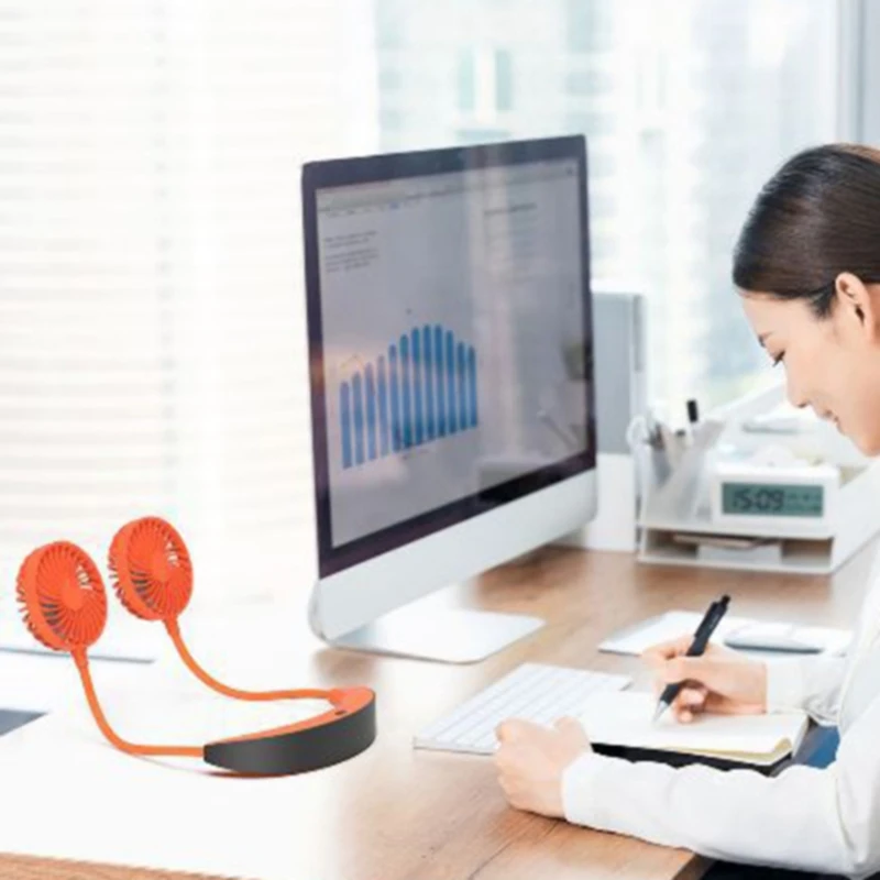 Двухголовый подвесной вентилятор для шеи, легко носить с собой, просто Повесьте его на шею, чтобы освободить руки.