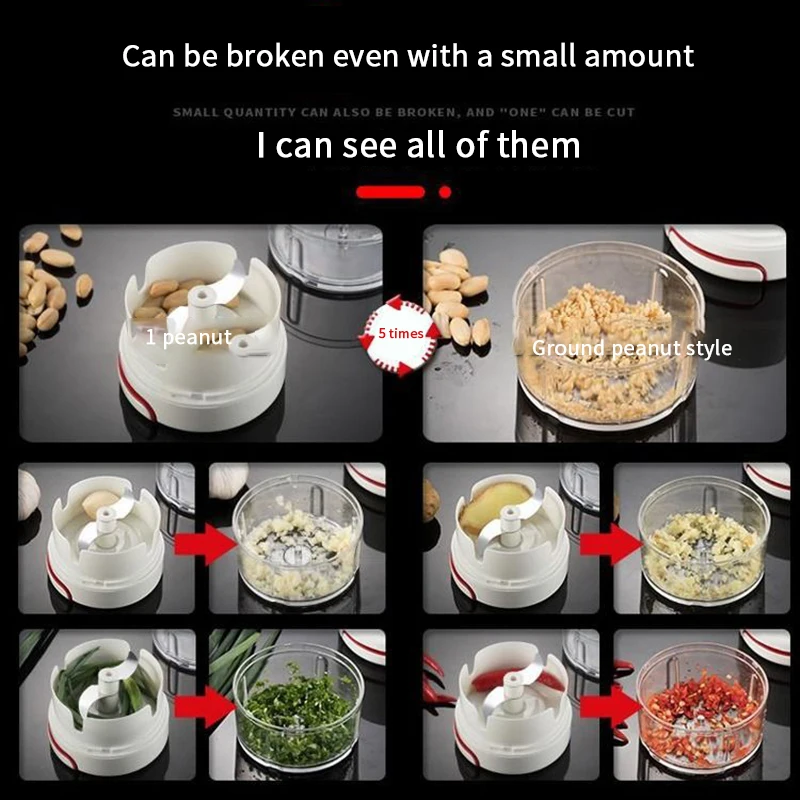 Идеально подходит для резки овощей/фруктовых салатов, разделочных орехов, трав, овощей, хумуса, сальсы, гуакамоле, мяса для мясной рулет, льда и многого другого. Это может быть использовано, а также измельчитель овощей, измельчитель салата, измельчитель лука, измельчитель чеснока, измельчитель капусты или ручной универсальный измельчитель еды.