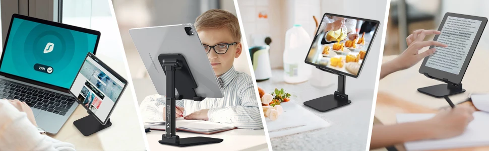 [Универсальная совместимость]: Это настольная подставка прекрасно работает с чтения электронных книг/планшетов/Чехлы для планшетов iPad, как, например, iPad Pro 12,9, 11 дюймов, для iPad Air 1/2/3/4, iPad 10,2 6-го/7-го/8-го поколения, iPad mini 1,2,3,4, Samsung Galaxy Tabs, портативный монитор, Microsoft Surface планшеты: surface Pro X/Pro 7/Pro 6/Pro 4/Pro 3/Surface Go, Amazon Kindle Fire HD, И т. д. любые мобильные телефоны, iphone и ноутбуки.