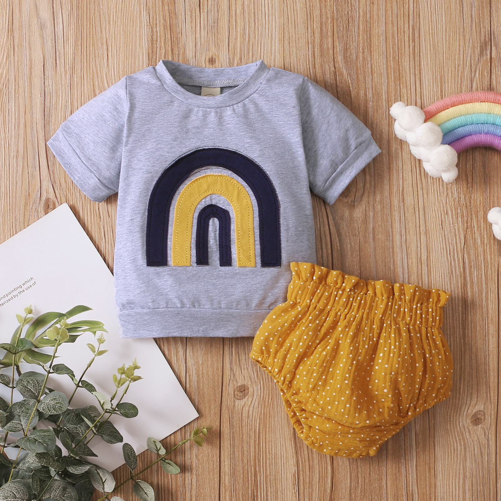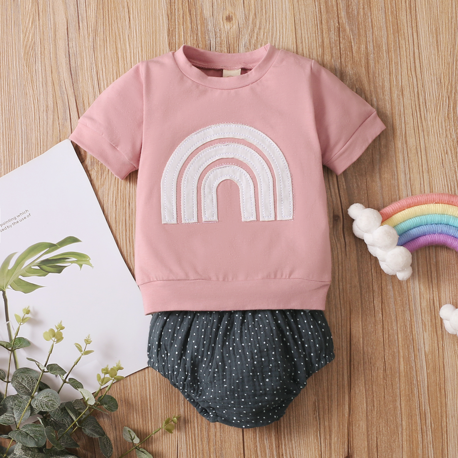 Детский костюм из двух предметов обеспечивает комфортное ношение вашего ребенка. Дизайн радужного узора делает его модным и особенным.