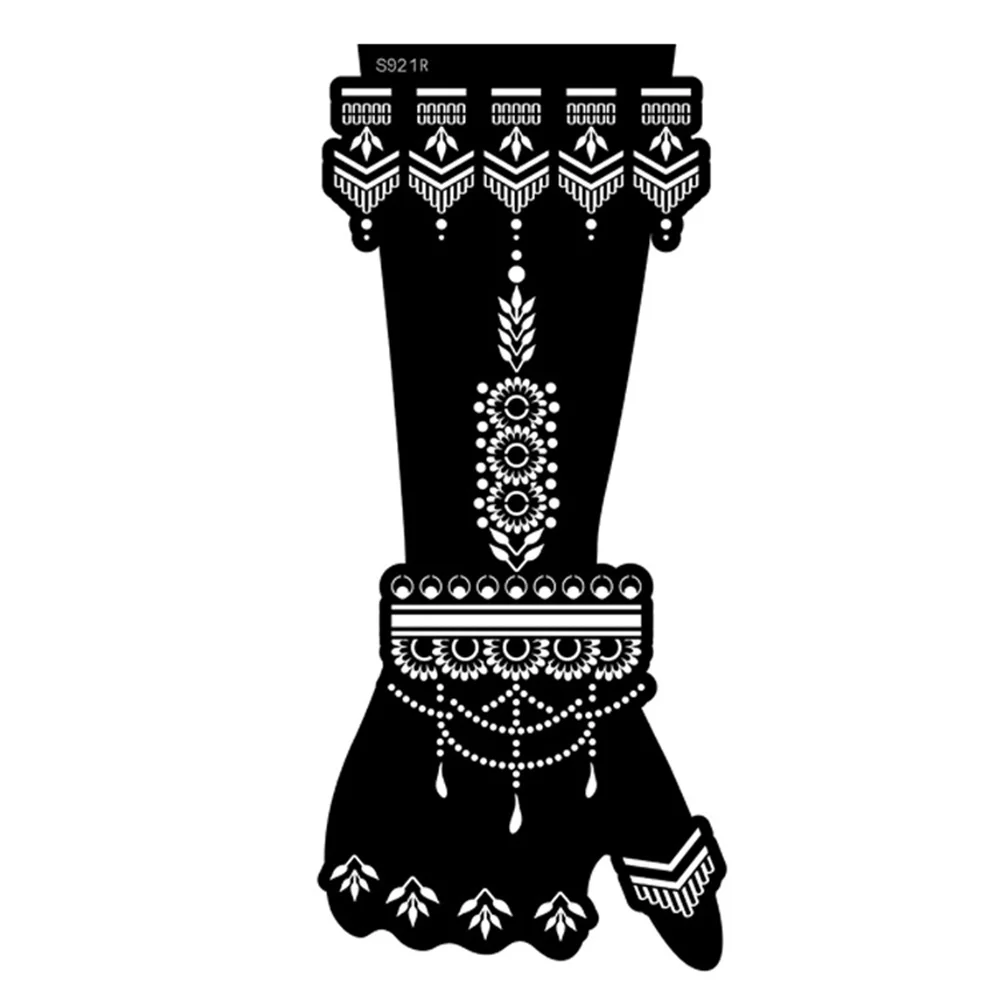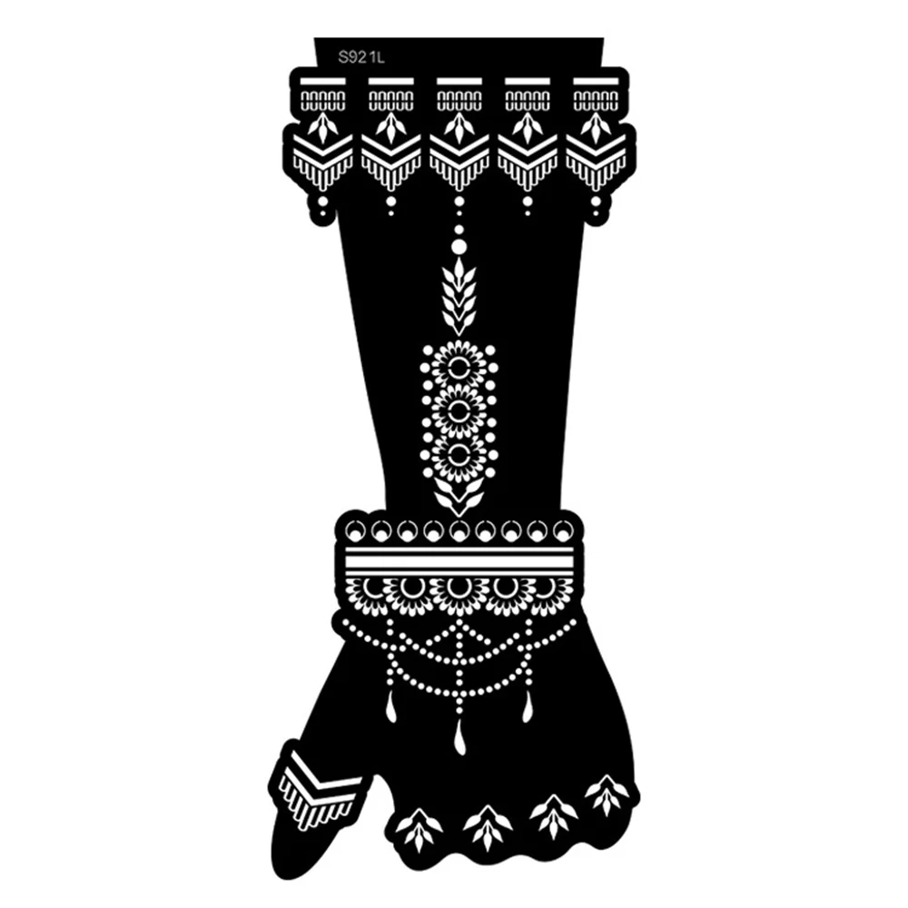 Название товара: трафарет для татуировки хной Количество использований: Многоразовый Материал: ПВХ Цвет: как на фото Размер изделия: 31 см * 14 см Номер товара: как на картинке Посылка 1 шт Шаблон татуировки руки