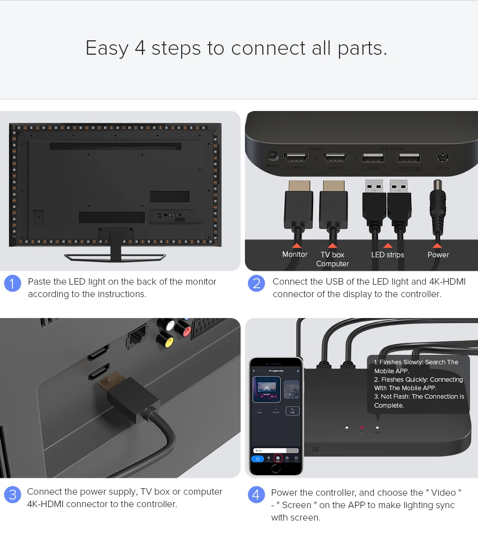 Wi-Fi Alexa TV PC комплект подсветки 4K-HDMI монитор Google Assistant Голосовое управление HD ТВ экран окружающие светодиодные фонари Dream Back Lighting