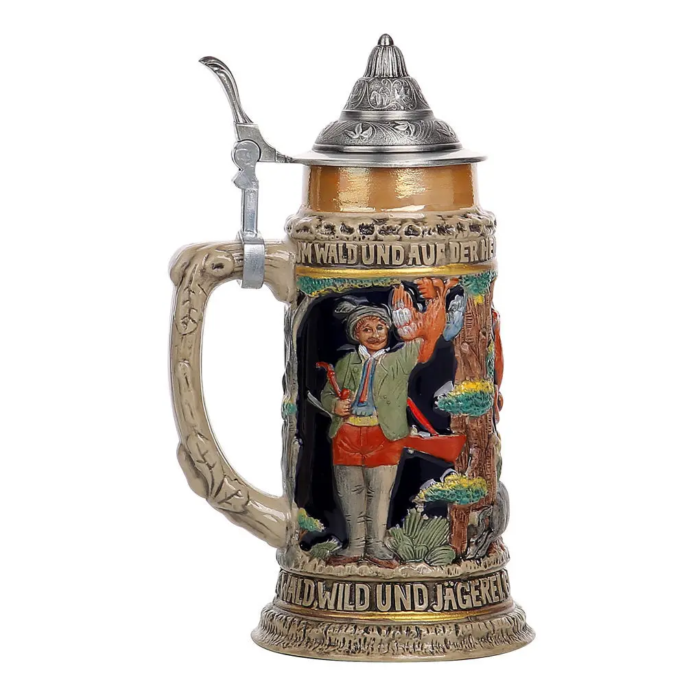 [Дизайн]-этот керамический пивной Штайн в немецкой тематике имеет детальную гравировку немецких пальто рельефа. Это не просто настоящая пивная кружка, но может использоваться в качестве украшения.