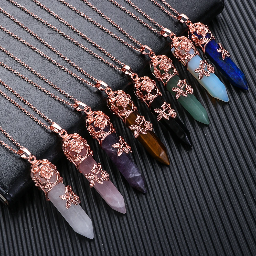 1 шт. модное шестиугольное целебное ожерелье с кристаллами цветок проволока обернутая аметистами Кварцевый Кристалл Рейки Исцеление натуральный камень кулон