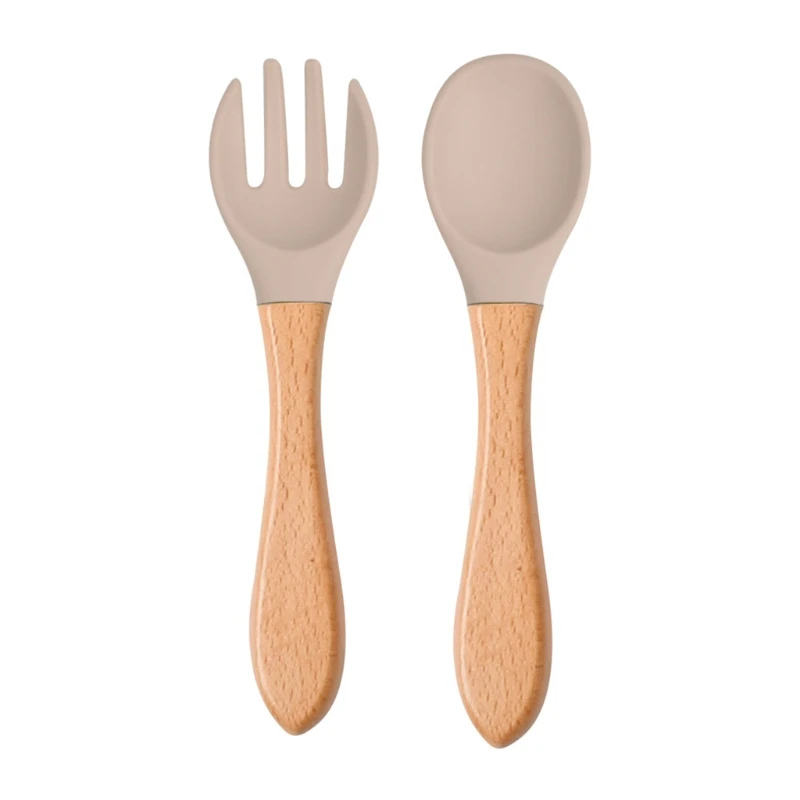 2 шт. силиконовые наконечники для кормления детей набор ложек и вилок с деревянной ручкой