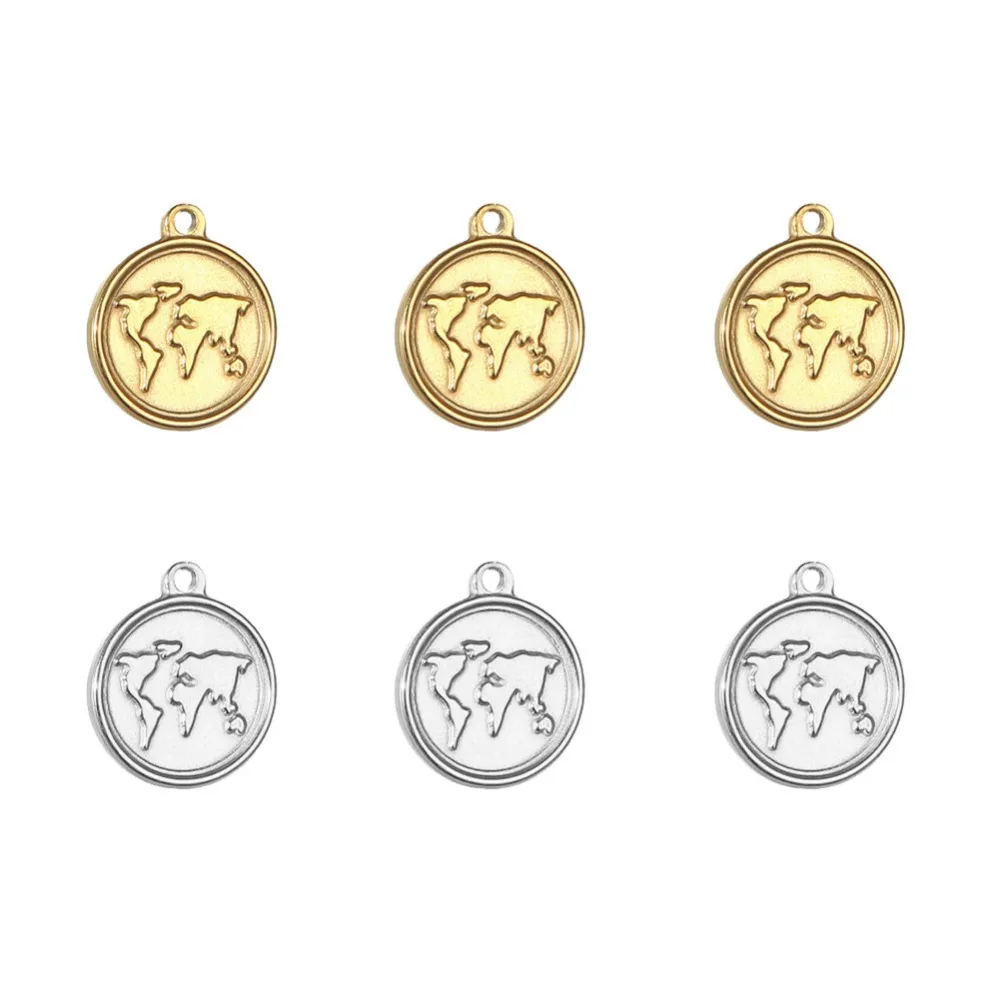 Подвески из нержавеющей стали с картой мира, круглые подвески для монет, подвески для ожерелья, сделай сам, изготовление ювелирных изделий