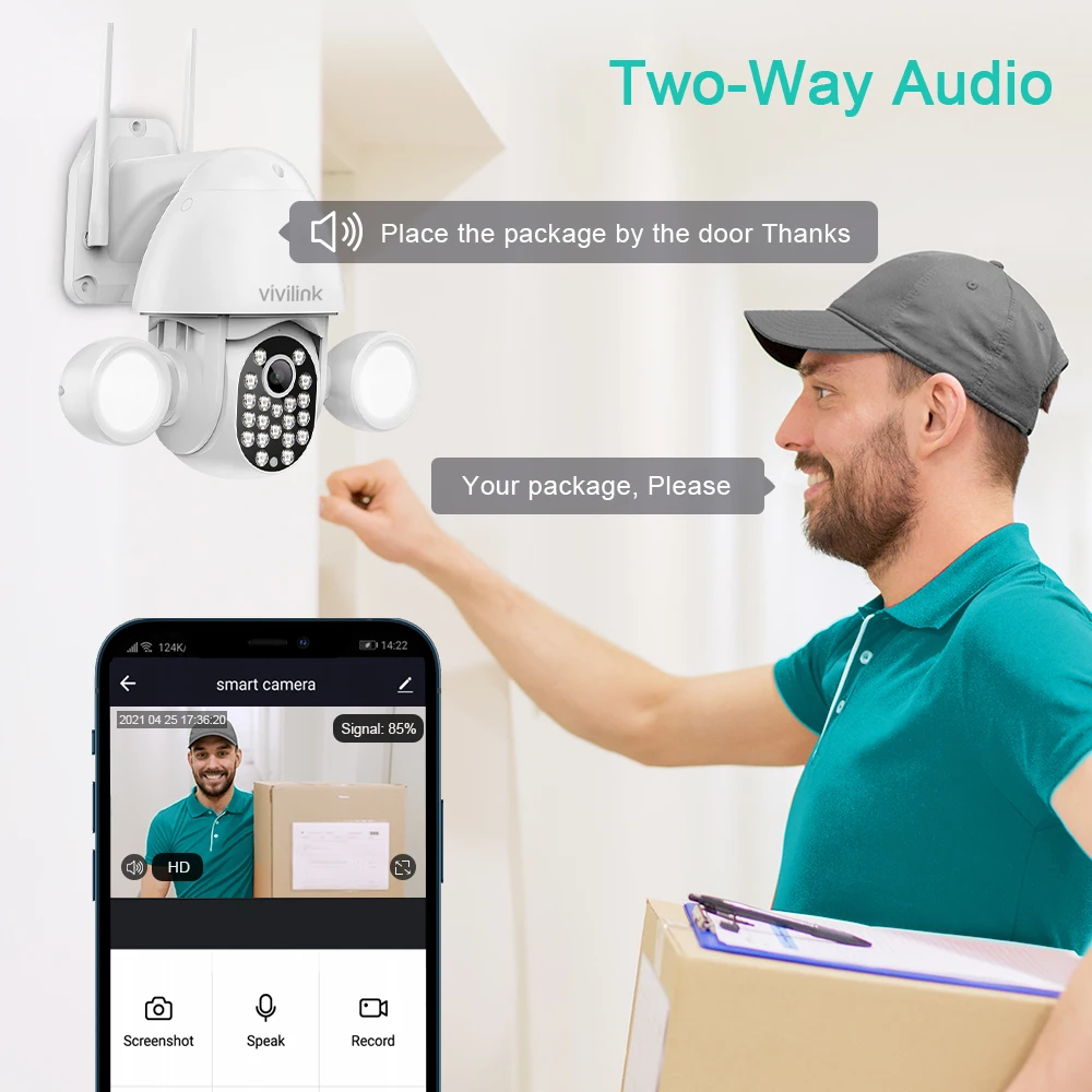 Эта система камер домашней безопасности позволяет вам слушать и говорить обратно через встроенный динамик и микрофон, которые работают непосредственно через ваш телефон.