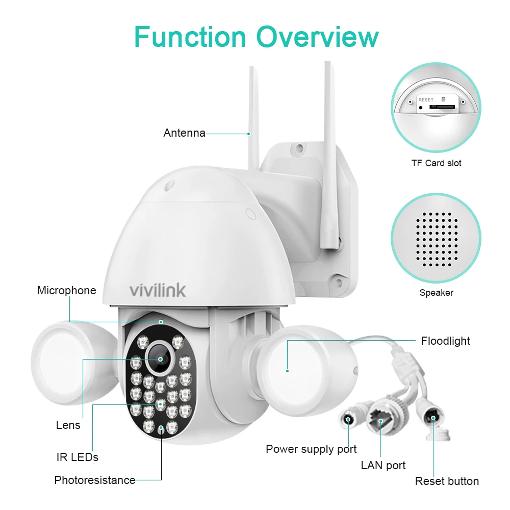 Темная ночь не подходит для этой камеры безопасности с 2 шт яркие прожекторы лампы, которые будут освещать ваш двор, обеспечивая действительно красочные ночные видео наблюдения для вас.