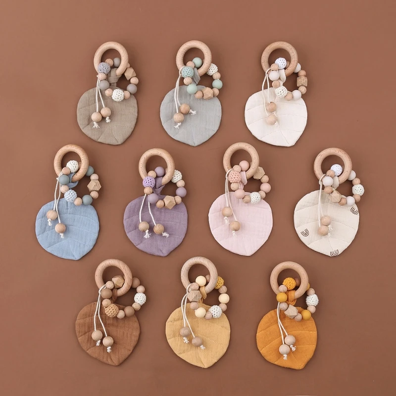С листьями в форме слюни абсорбирующая ткань, хлопок и деревянные бусины дизайн.
