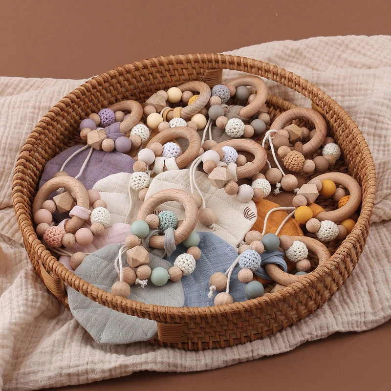 Деревянное кольцо для прорезывания зубов, легко для ребенка хватать, держать и жевать.