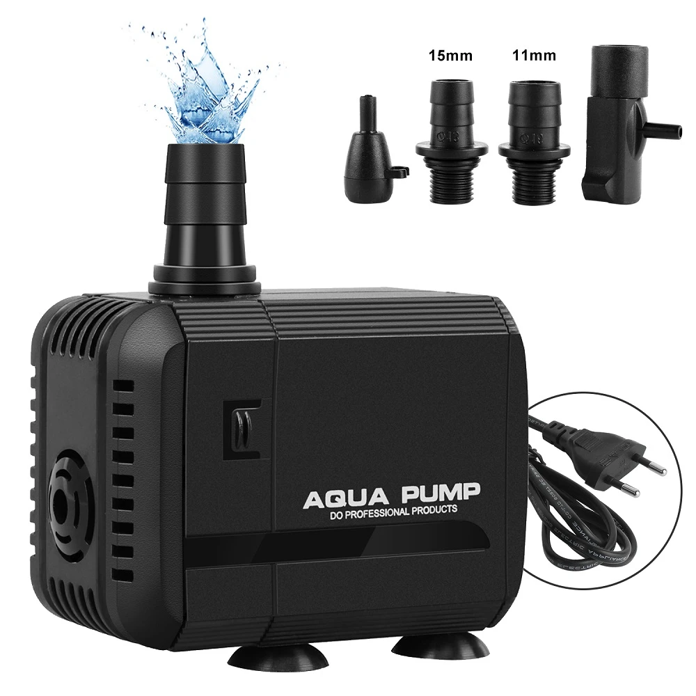 2 пусковых адаптера: оснащен 3 выпускными адаптерами (диаметр 19,22,25 мм), которые обеспечивают различный поток воды по вашему желанию. Этот погружной насос идеально подходит для пресной воды, соленой воды, идеально подходит для использования в аквариумах, фонтанах, водопроводах и прудах.