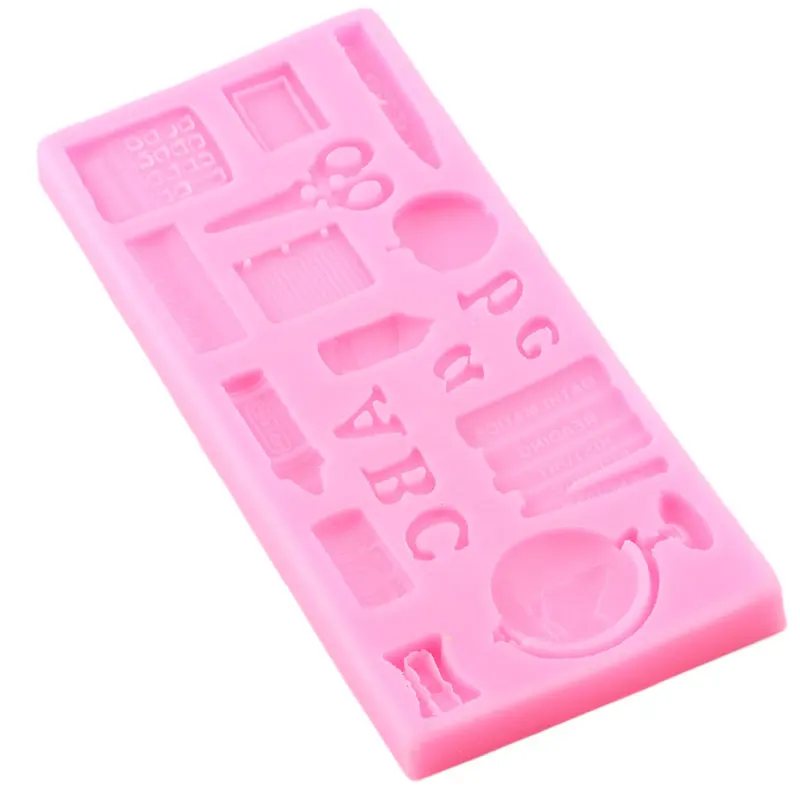 Инструменты для обучения, силиконовая форма, Книжная ручка, линейка, кекс, Топпер, сделай сам, помадные формы, инструменты для украшения тортов, форма для шоколадной мастики