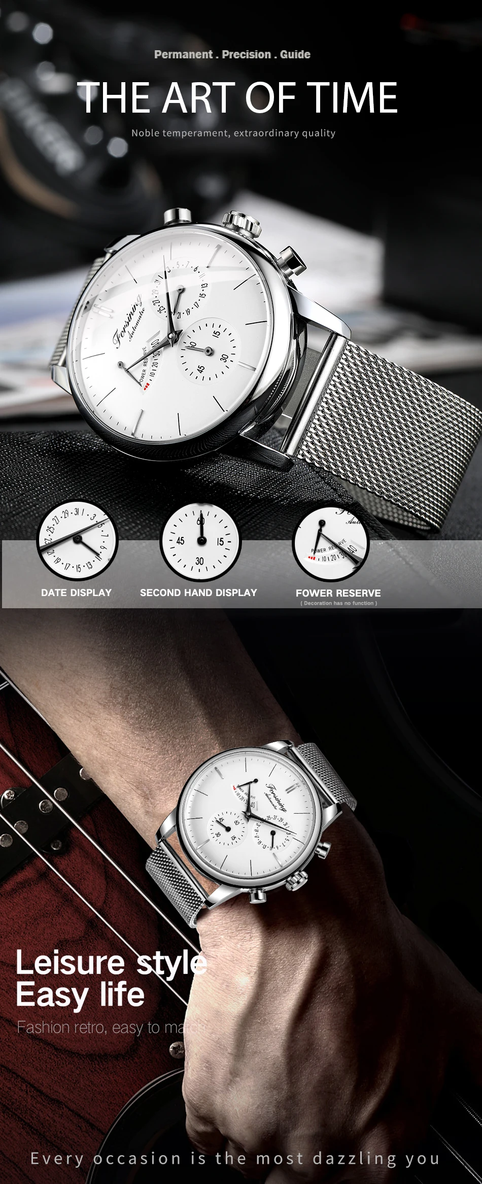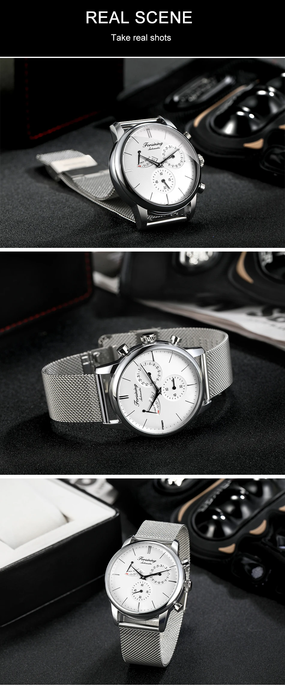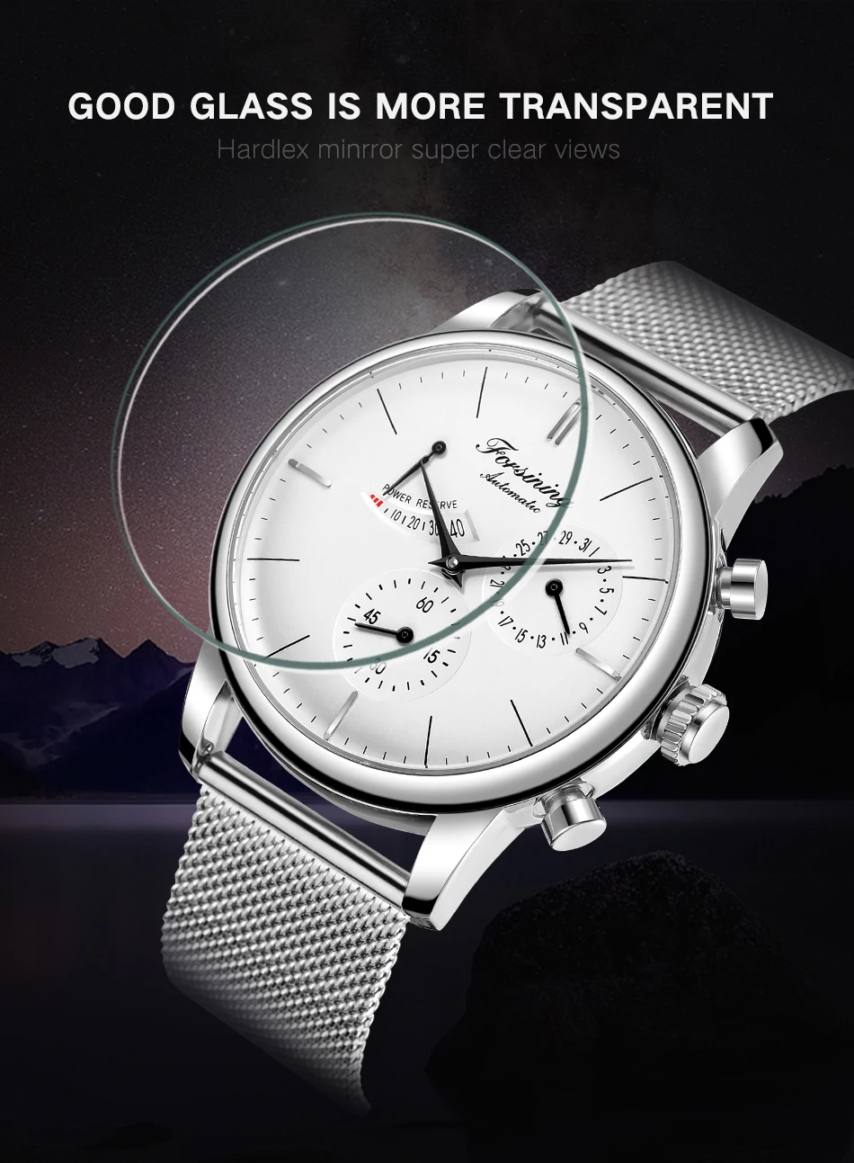 Forsining часы Досуг выдалбливают индикатор энергии механические часы автоматические механические часы мужские часы стальной пояс механические часы