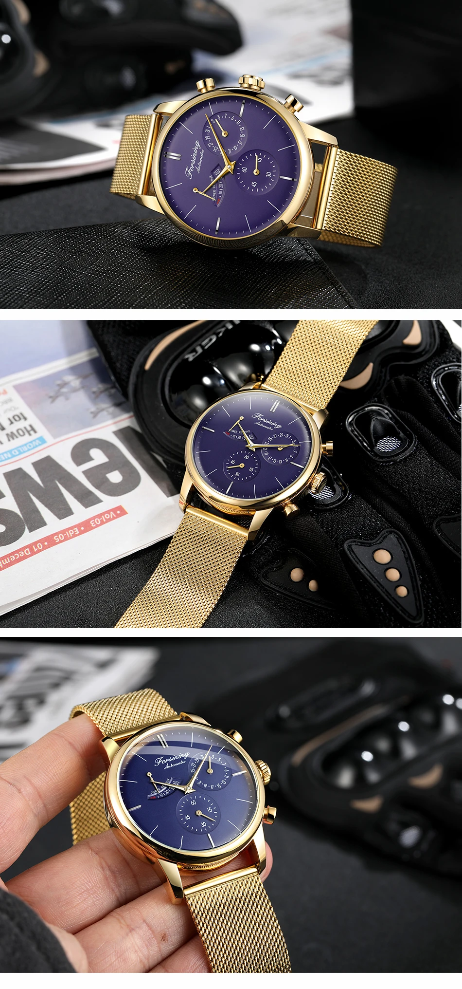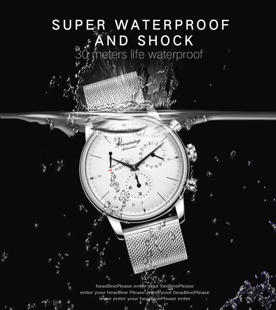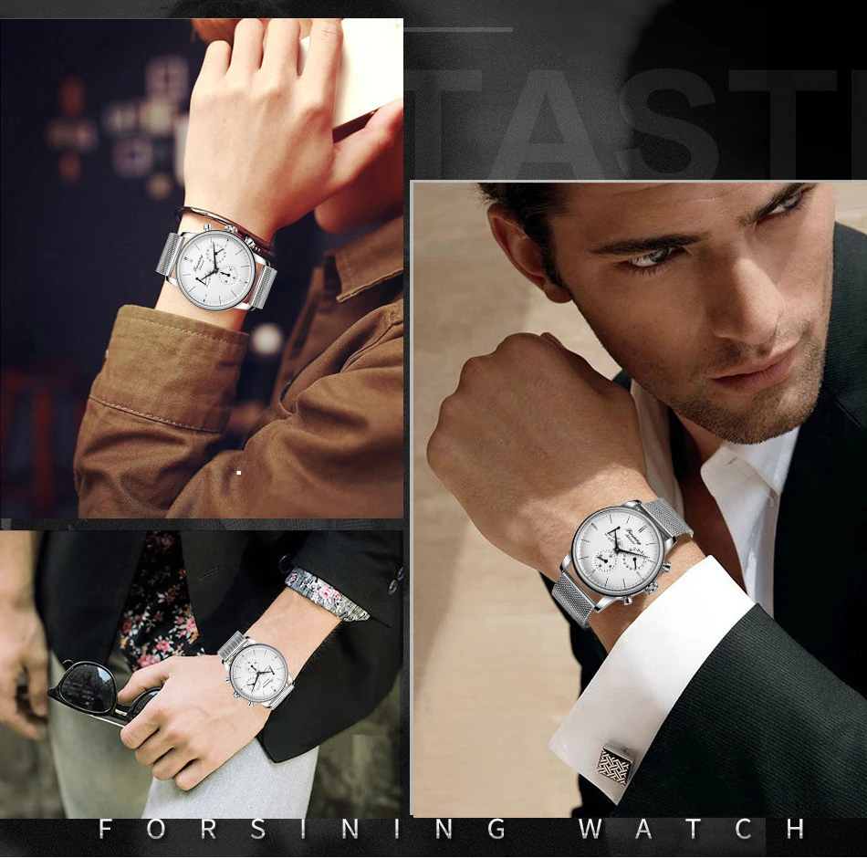 Forsining часы Досуг выдалбливают индикатор энергии механические часы автоматические механические часы мужские часы стальной пояс механические часы