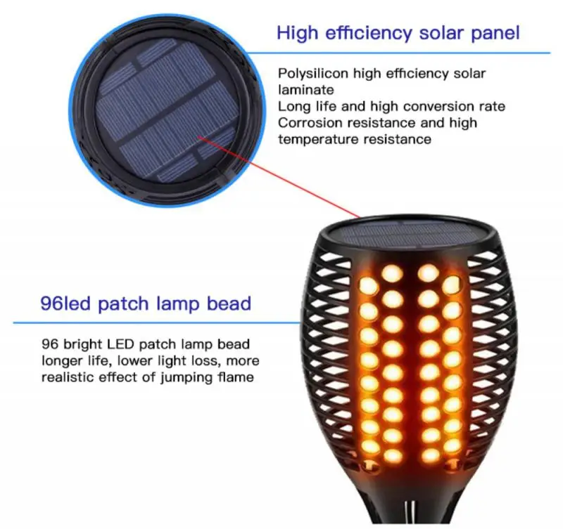 1. [2020 модернизированные солнечные огни на открытом воздухе]: ярче с модернизированными лампами, технология быстрой зарядки с большой солнечной панелью, безопасная альтернатива реальному «огню», романтическое украшение. Выделите section-96LED.