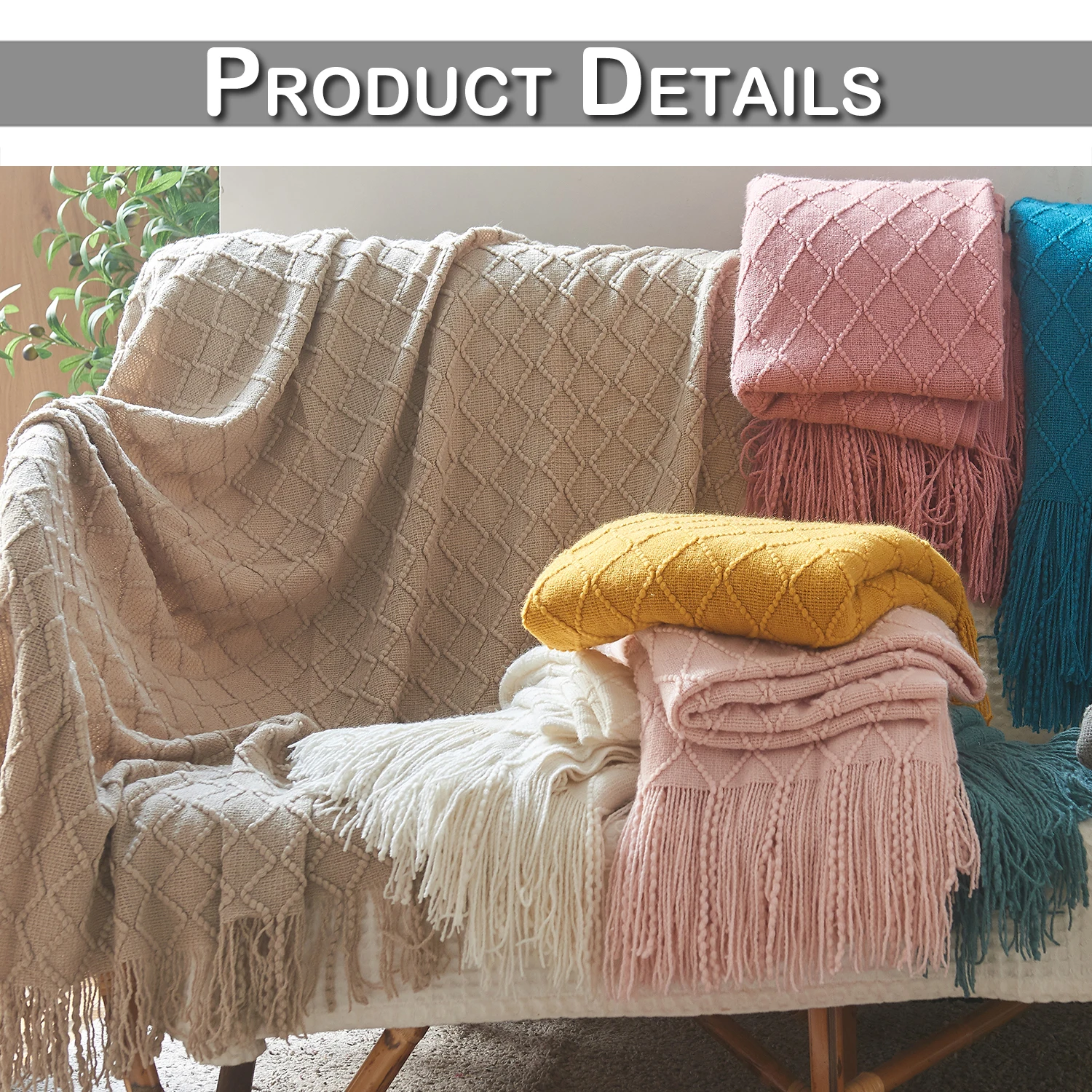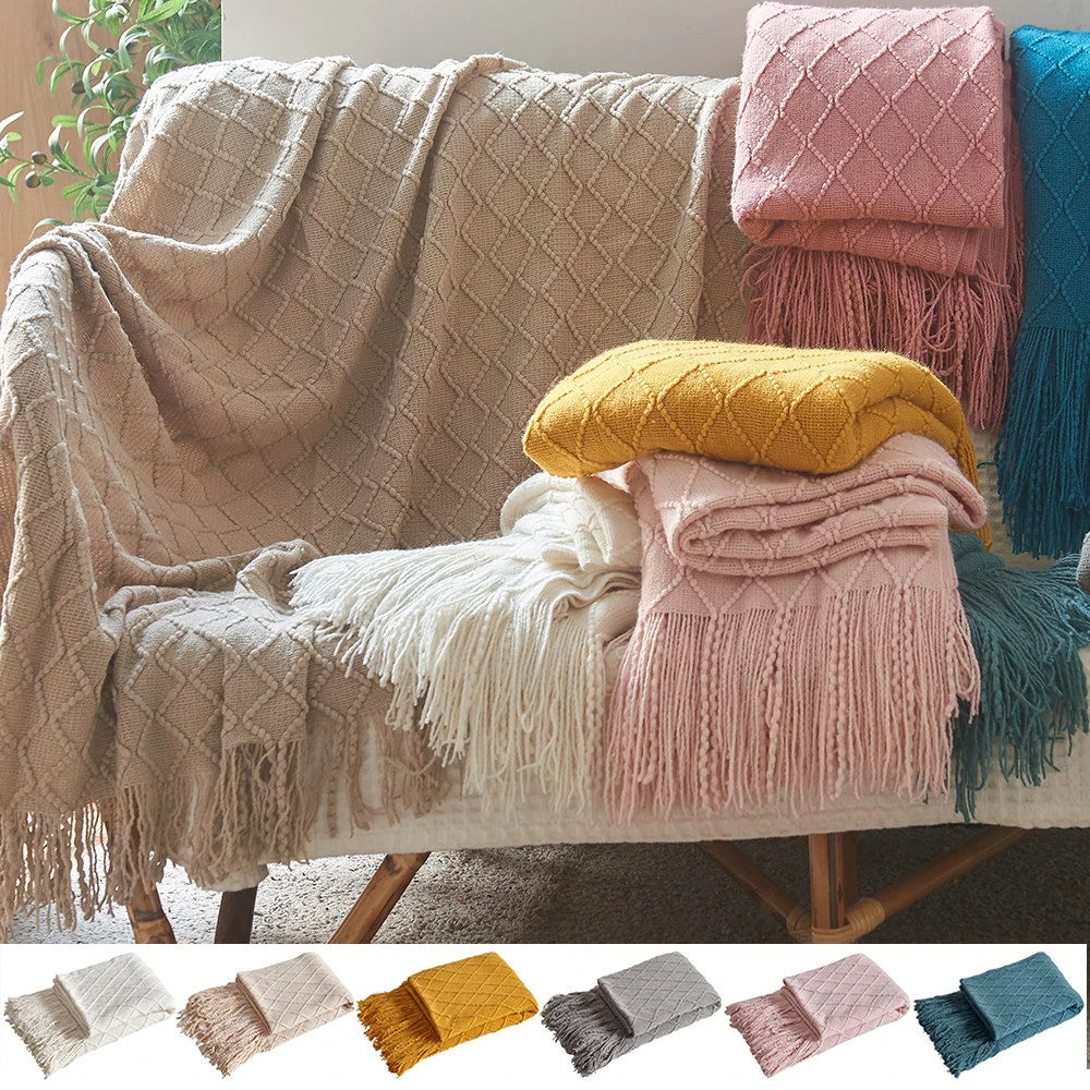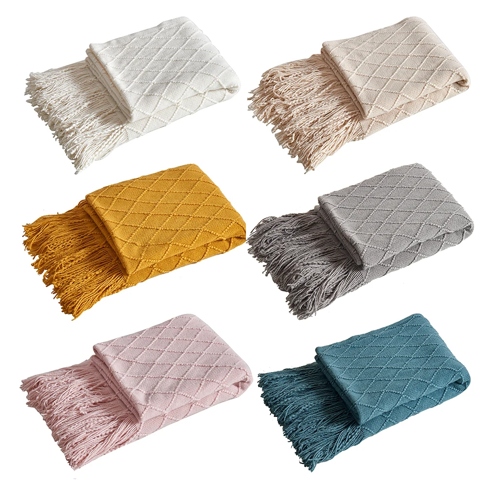 Вязаное одеяло с кисточками, винтажное теплое мягкое Тканое покрывало для дивана, Детское покрывало, элегантное покрывало для домашнего декора, 6 цветов (125x170 см))