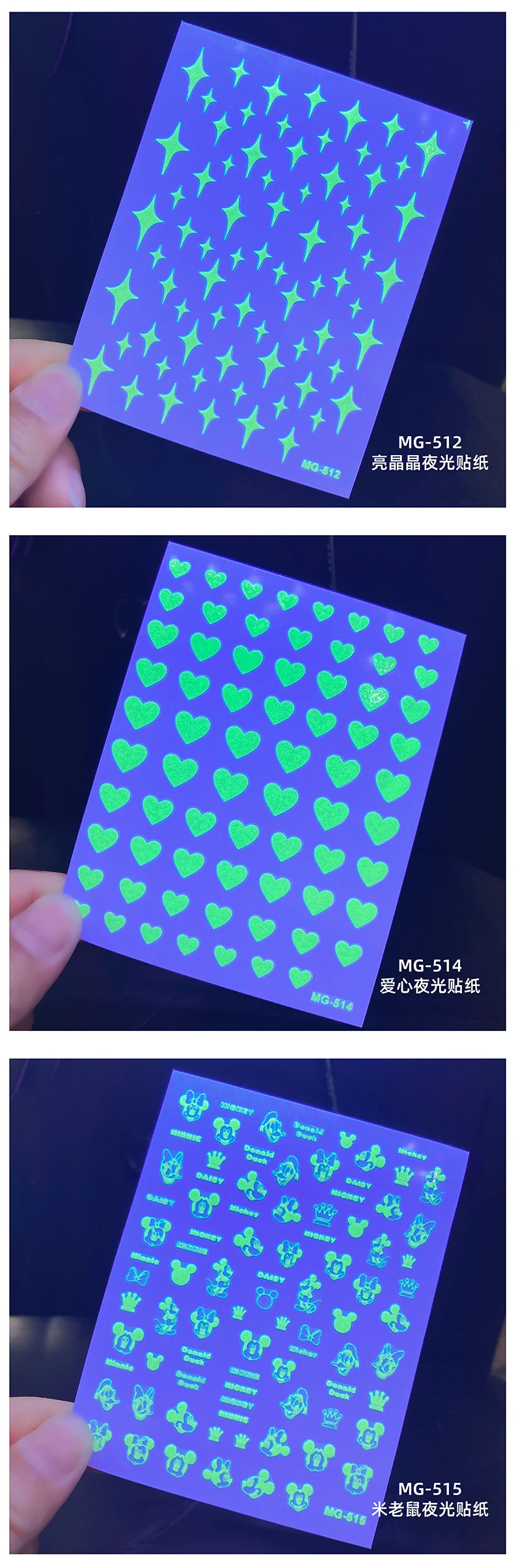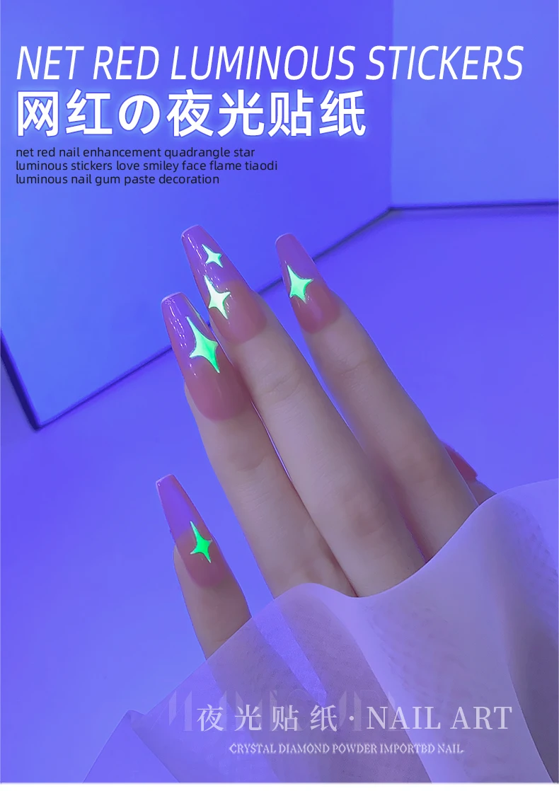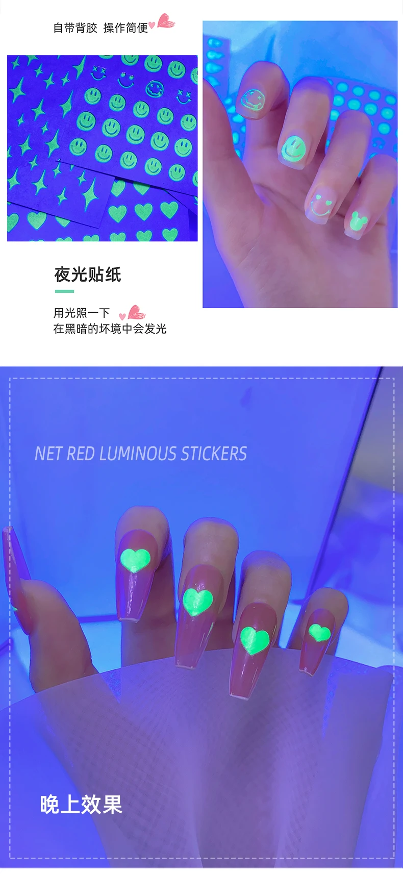 Светящиеся наклейки для дизайна ногтей, украшения, Типсы для маникюра, инструмент 3D, сделай сам, дизайн, звезда, луна, Бабочка, единорог, сердце, огонь, улыбка, мультфильм