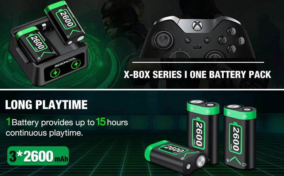 Аккумуляторная батарея для Xbox One обеспечивает до 15 часов игрового времени на аккумулятор 2600 мАч, И он также совместим с беспроводными контроллерами Xbox Series X | S/Xbox One X/Xbox One 6