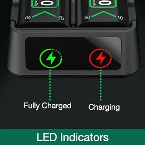 Для аккумуляторной батареи xbox серии x имеет порт зарядки micro USB, простой в использовании и встроенный светодиодный индикатор, вы можете узнать состояние зарядки в любое время, зарядный красный светильник, полный/резервный зеленый светильник, красный светильник мигает при зарядке неисправного аккумулятора.