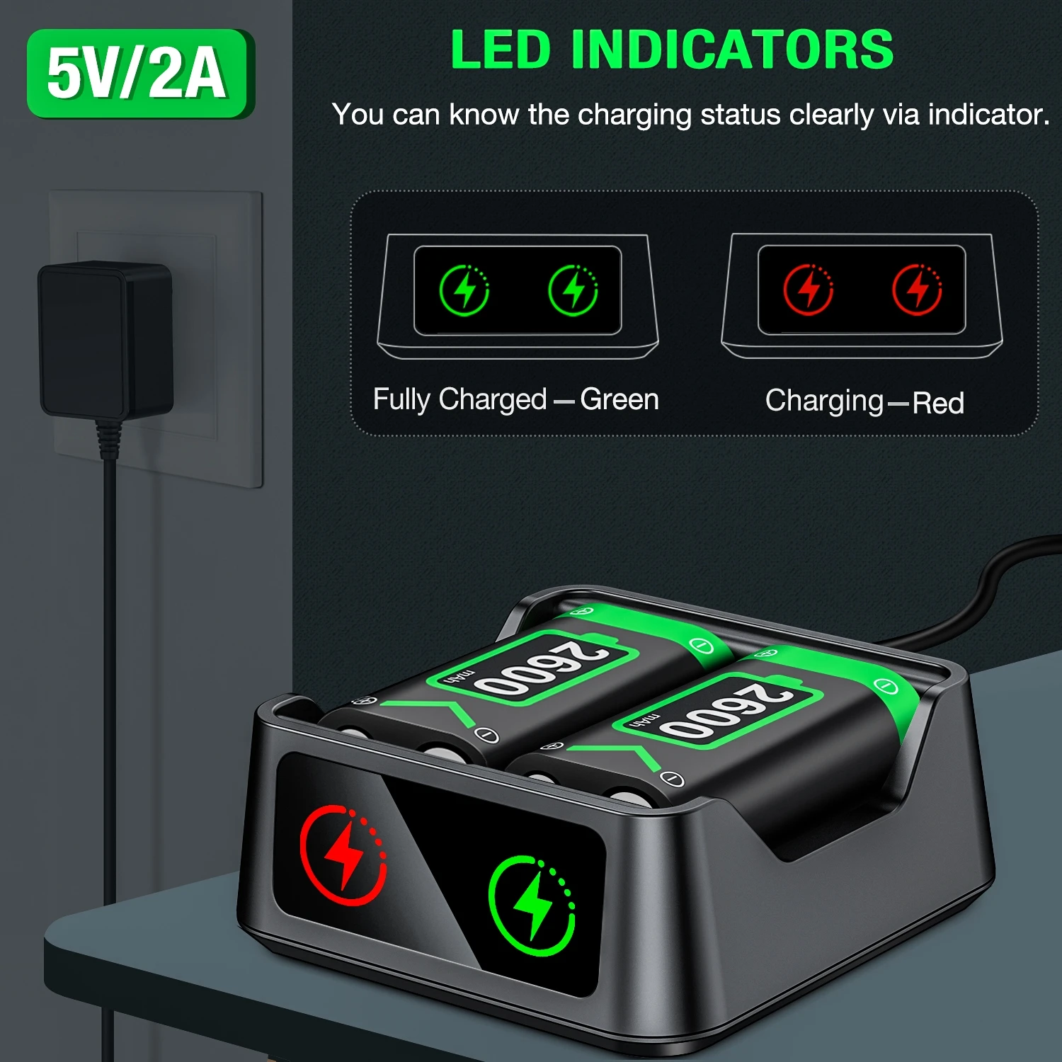 С контроллером Xbox серии x аккумулятор имеет в общей сложности 3 батареи, и зарядное устройство может поддерживать зарядку 2 батареи одновременно. Это займет всего 2,5 часов для полной зарядки батареи с аккумулятором емкостью 2600 мА · ч.