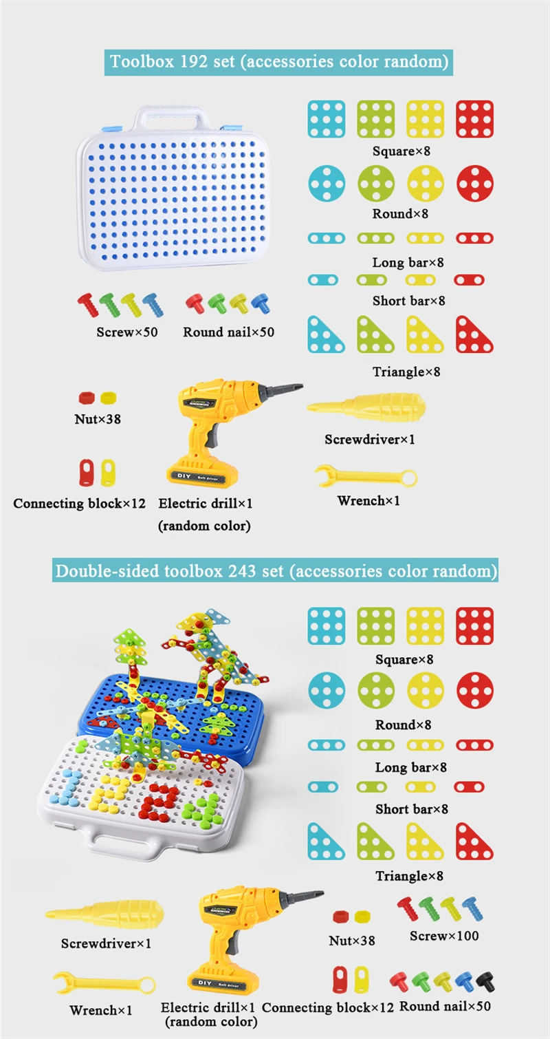 Сверлильный винт 3D креативная мозаика пазл игрушки детские строительные кирпичи обучающая игрушка разборка электрическая дрель набор инструментов