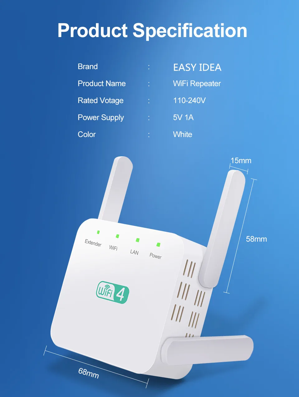 2.【Easy Setup】: Plug and play, Настенный дизайн с мини-размером, следуйте инструкциям пользователя, чтобы легко настроить, никаких сложных шагов и технических специалистов не требуется.3. 【Высокая Производительность: Поддержка сигнала Wi-Fi, простирающегося через стену; Дальность действия может быть до 100 футов, больше нет мертвых зон в вашей умной домашней жизни (динамик/мониторинг/ТВ/дверной звонок/термостат).2 внешних антенны для лучшей производительности, Надежная Беспроводная N скорость сети до 300 Мбит/с, охватывающие вашу спальню, полы, туалет, гараж и сад.4. 【Широкая Совместимость: Работает с любым беспроводным маршрутизатором или системой WiFi на рынке. До 300 Мбит/с 2,4 ГГц беспроводной скоростной режим. Поддерживает все устройства, включая смартфон, iPhone, iPad, планшет, ноутбук, рабочий стол, Smart TV, TV Box, Alexa, беспроводные камеры безопасности и т. Д.
