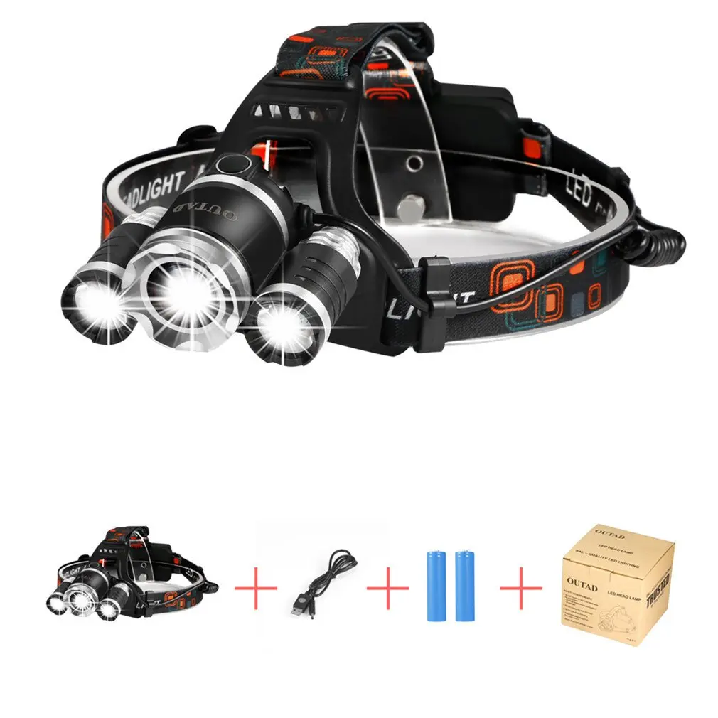 Посылка включает в себя: фара головного света, 2 перезаряжаемые Li-ion18650 2200mAh 3,7 V аккумулятор и зарядное устройство USB-кабель.
