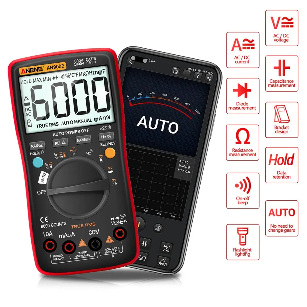 Особенности: 1. Данные измерений визуализируются и записываются через беспроводной мобильный телефон, что помогает нам сделать измерение более удобным и точным. 2. Прочный материал: Этот продукт изготовлен из высококачественного АБС-материала, долговечный и длительный срок службы. 3. Новый Улучшенный профессиональный мультиметр, который может осуществлять дистанционное управление и измерение с помощью беспроводной технологии. Описание: Эта продукция работает от аккумулятора, ture-rms, автоматический цифровой мультиметр с ЖК-дисплеем 6000 и подсветкой. Характеристики: Цвет: красный Материал: АБС-пластик Скорость обновления: 3 раза/секунду Тип батареи: 2*1,5 V AA батарея (не входит в комплект) Посылка включает в себя: 1 * Беспроводной мультиметр (аккумулятор в комплект не входит)