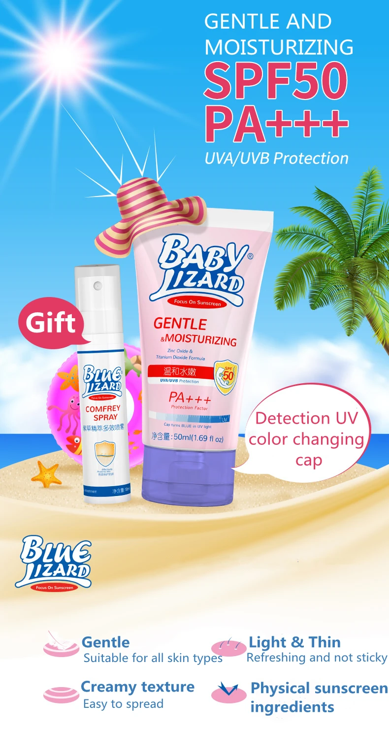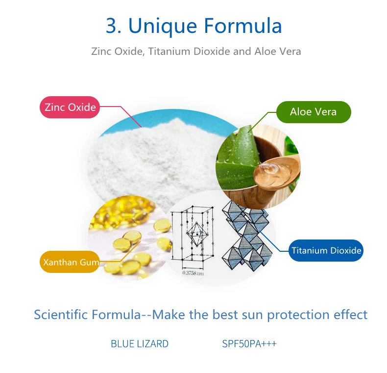 2. Голубая ящерица тщательно отбирает сырье для солнцезащитных средств, которое является мягким и не раздражающим. Синяя ящерица-хороший выбор для любителей спорта на открытом воздухе или чувствительной и хрупкой кожи