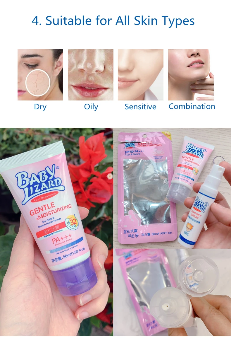 💖Эффекты: 1. Эта нежная и увлажняющая Солнцезащитная ящерица очень проста в использовании и равномерно распределяется по лицу (и телу). Придает тонкое гладкое покрытие, что делает его идеальной основой для макияжа. Увлажняющий компонент обеспечивает попадание воды на лицо, сохраняя его влажным.