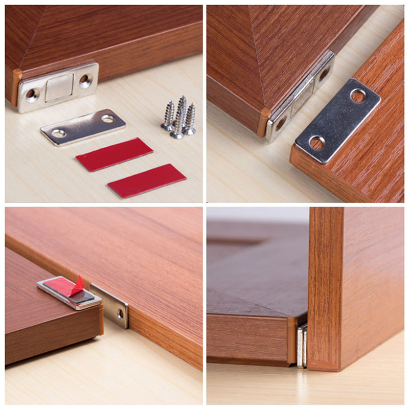 Магнетизм-сильный магнетизм гарантирует, что ваши двери и ящики шкафа не будут ослабляться. Этот вид питания в самый раз и не затруднит вам открыть шкаф или ящик.