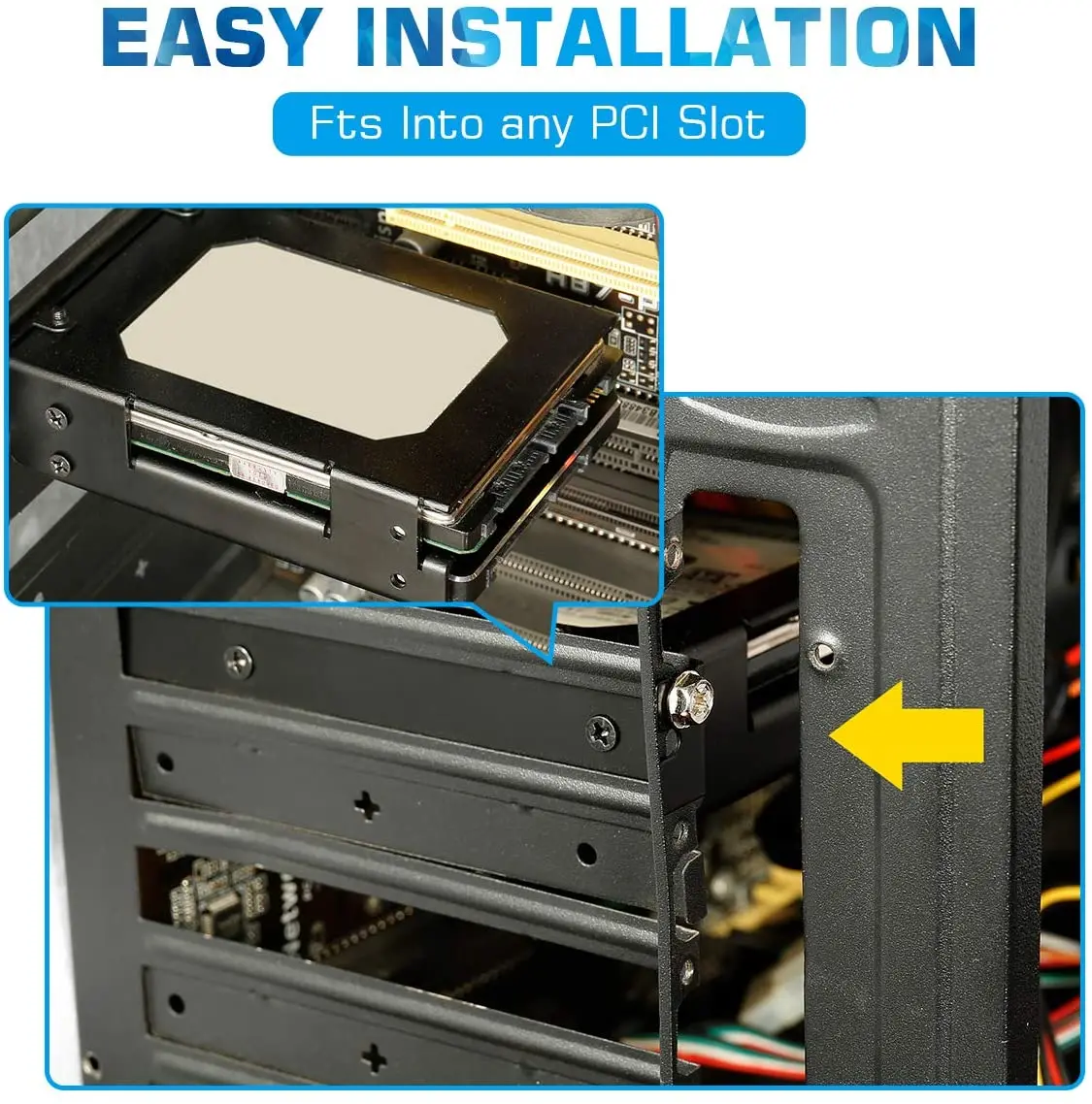 Увеличьте пространство: может преобразовывать два 2,5 дюймов жёсткий диск на 3,5-дюймовый отсек и преобразование 1 слот PCI-E 2x2,5» IDE/SATA HDD/SDD Монтажный кронштейн с помощью этого держателя, быстро Увеличьте и Увеличьте пространство внутри чехол компьютера