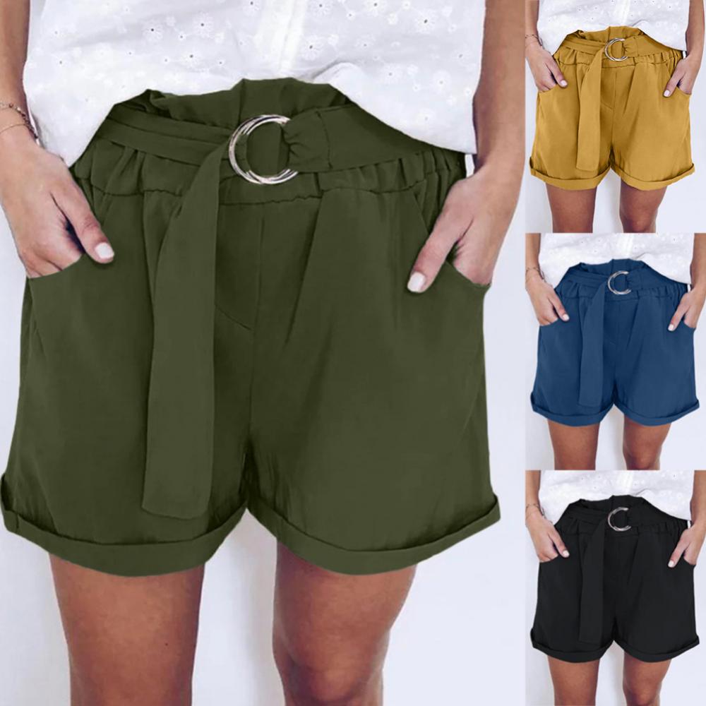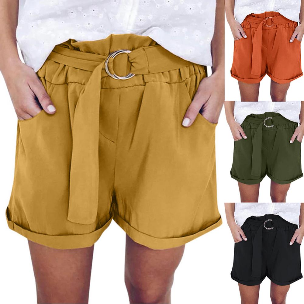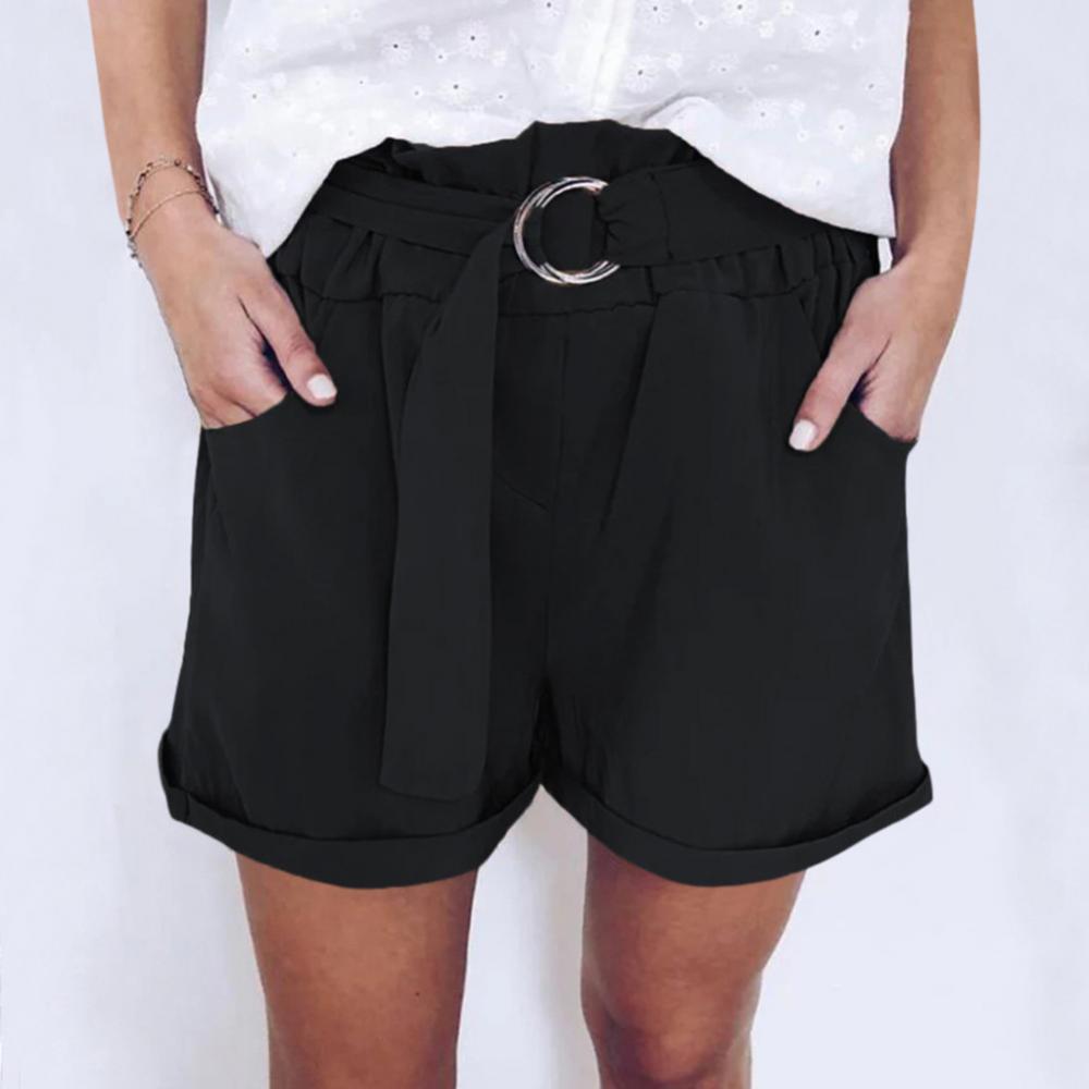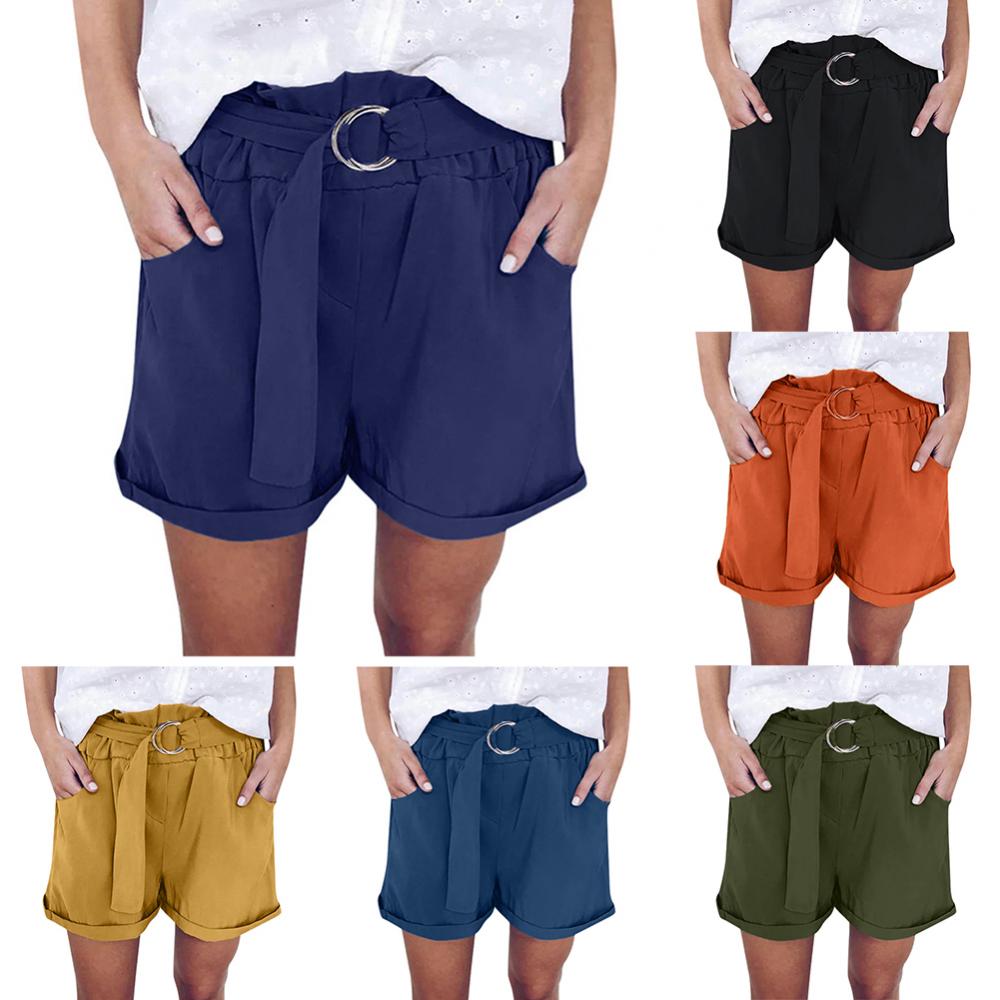 Женские повседневные однотонные широкие шорты с кольцевым ремнем и карманами, мини-брюки, популярные штаны