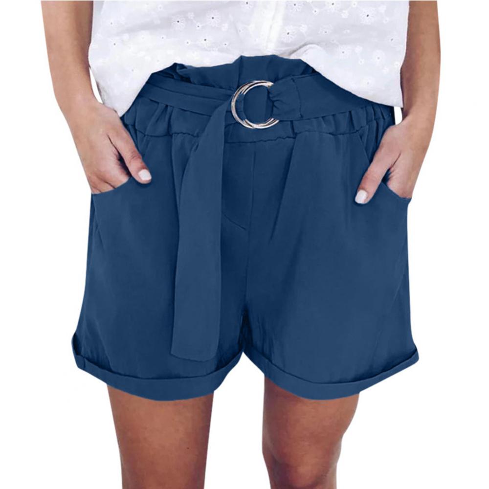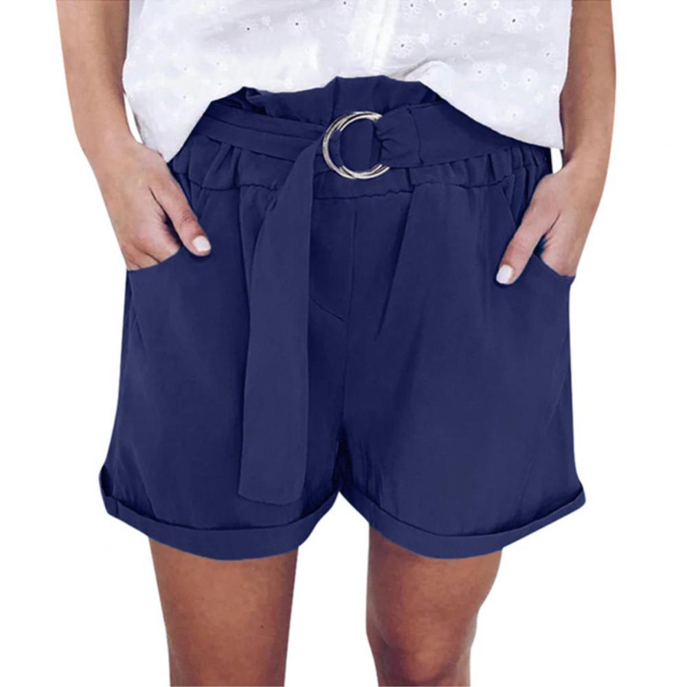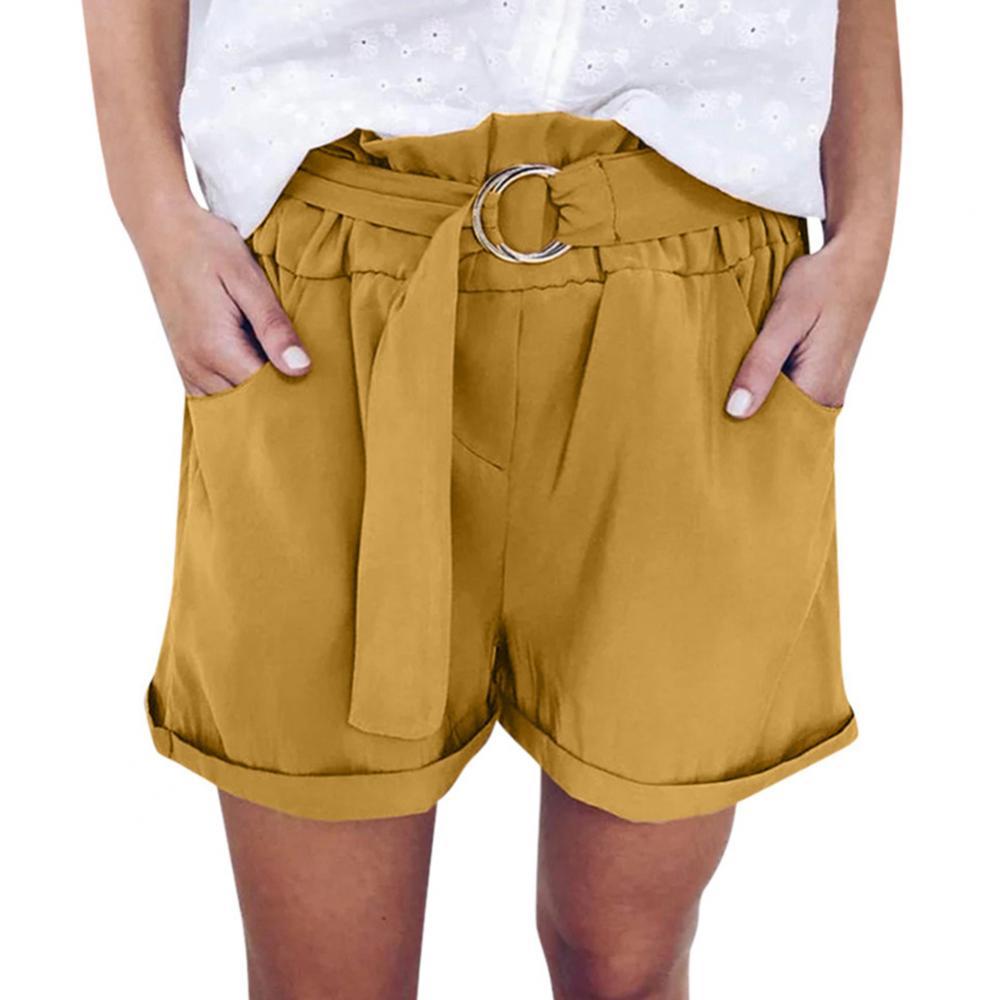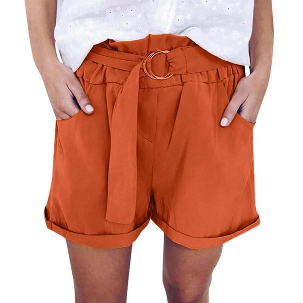 Женские повседневные однотонные широкие шорты с кольцевым ремнем и карманами, мини-брюки, популярные штаны
