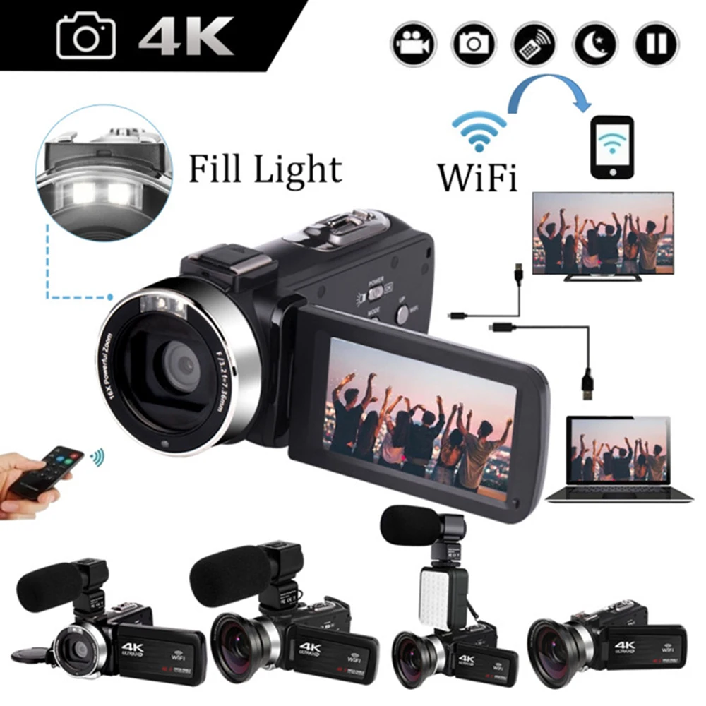 4K Video Camera Camcorder 16X Digital Zoom Handycam 48MP Built-in Fill Light Touch Screen Vlogging For Youbute Photography