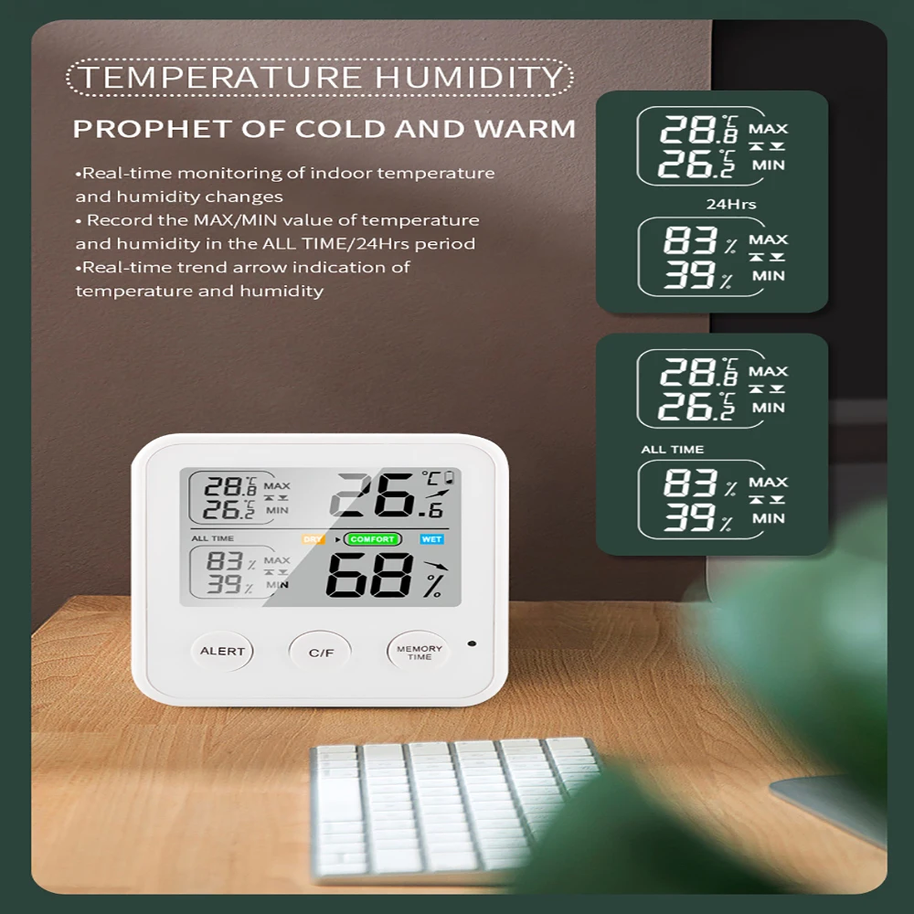 Комнатный термометр и гигрометр, обнаружение изменений в помещении в реальном времени, забота о здоровом образе жизни семьи.