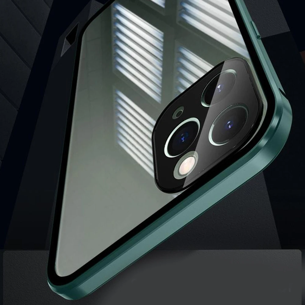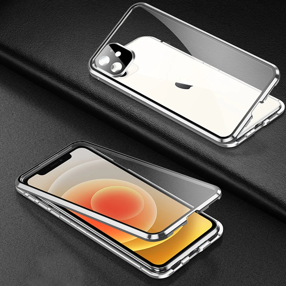 Для iPhone 11 12 Pro Max двухсторонний чехол с пряжкой на 360 градусов с магнитной адсорбцией, металлический чехол для iPhone X XS Max XR