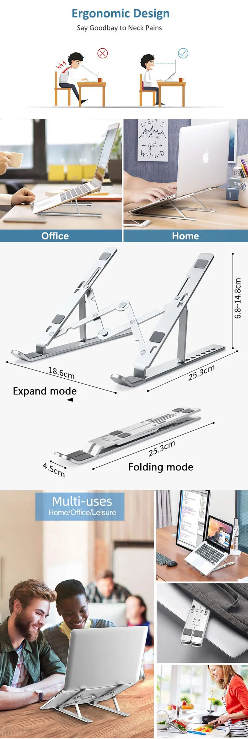 Эргономичная Алюминиевая Подставка для ноутбука, держатель для ноутбука MacBook, Складная регулируемая подставка для ноутбука, держатель для iPad