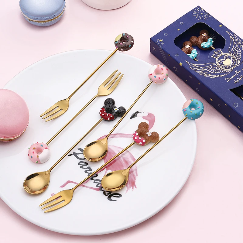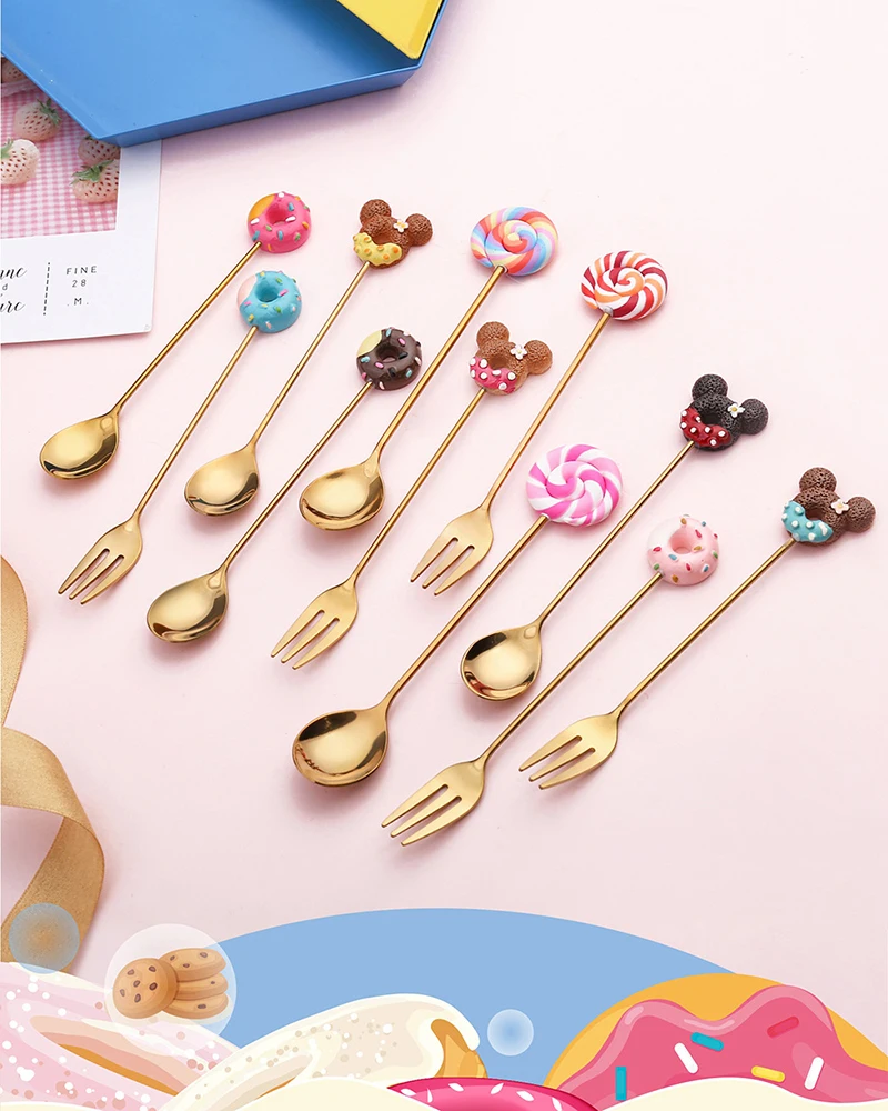 1 шт. Пончики из нержавеющей стали ложка для леденцов кухонные вилки посуда молочный кофе ложки для помешивания десерт Инструменты для торта столовые приборы набор ложек