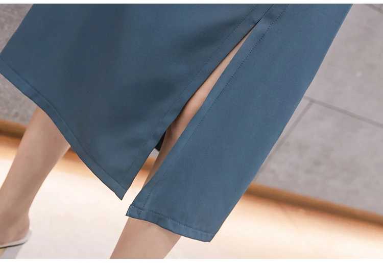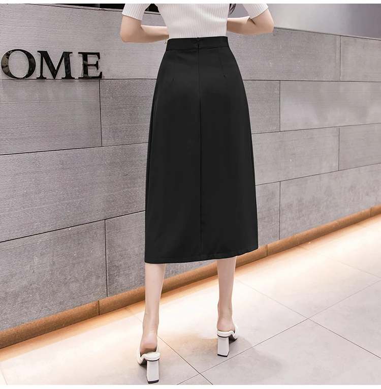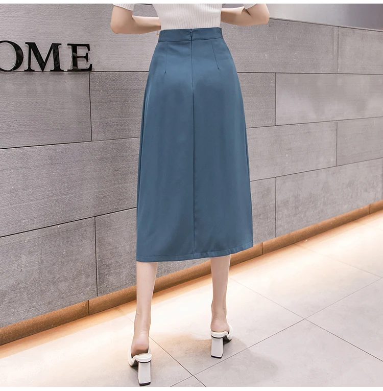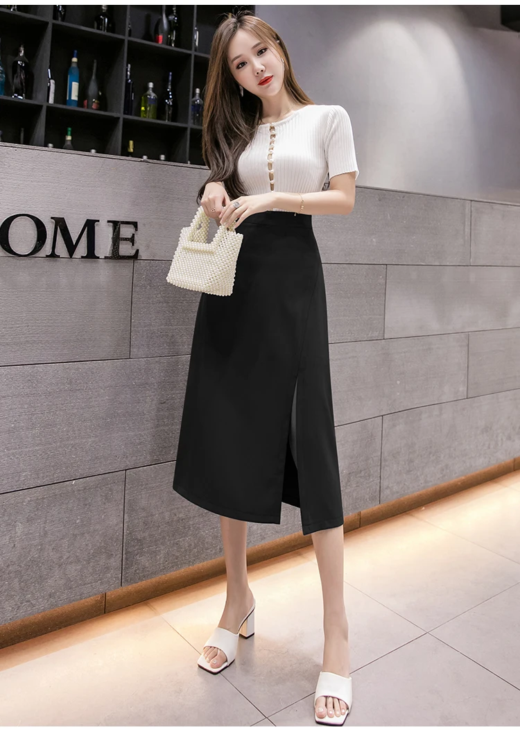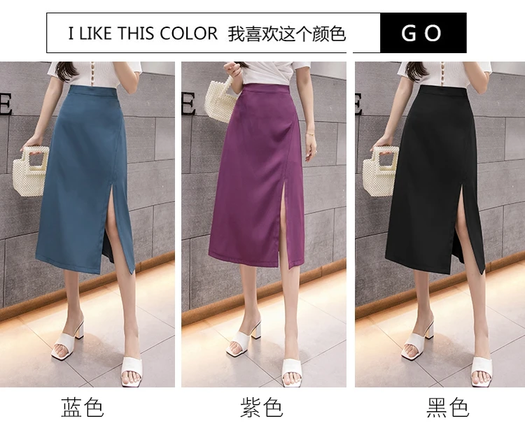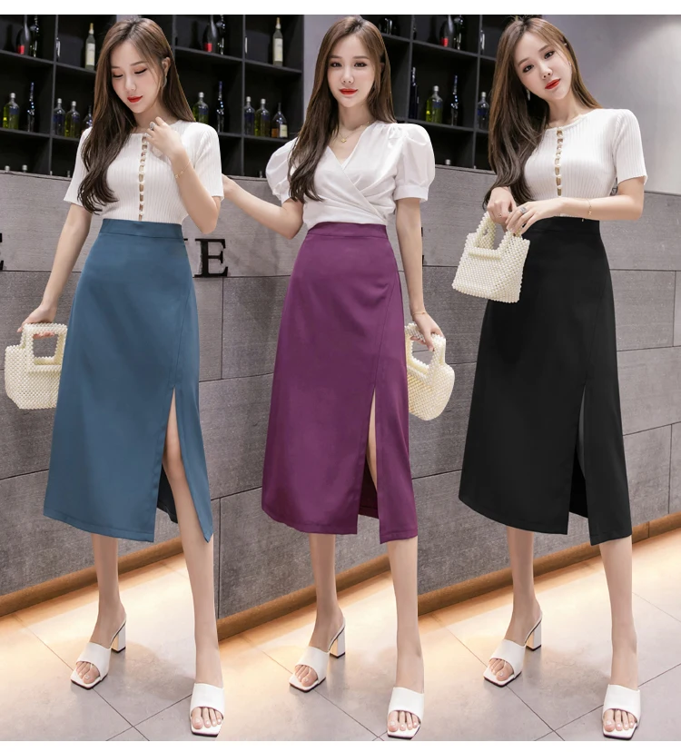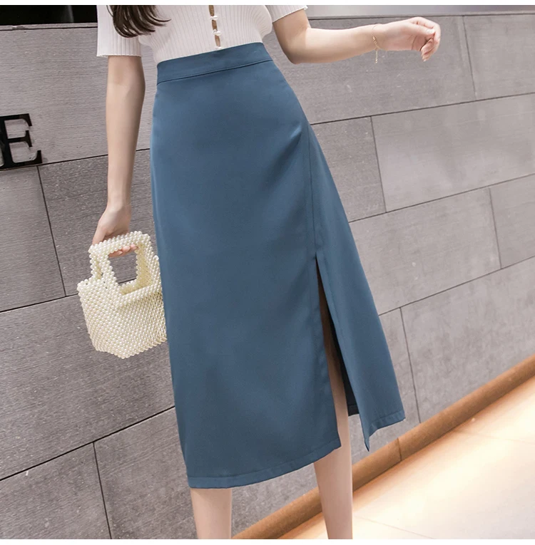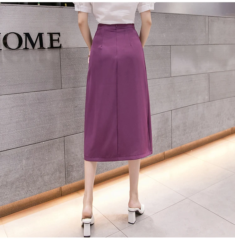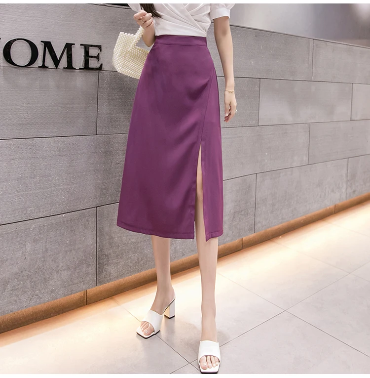 TingYiLi/юбка-карандаш трапециевидной формы с высокой талией и разрезом; Сезон весна-лето; Синяя, черная, фиолетовая Женская юбка в Корейском стиле; Офисная Женская юбка миди
